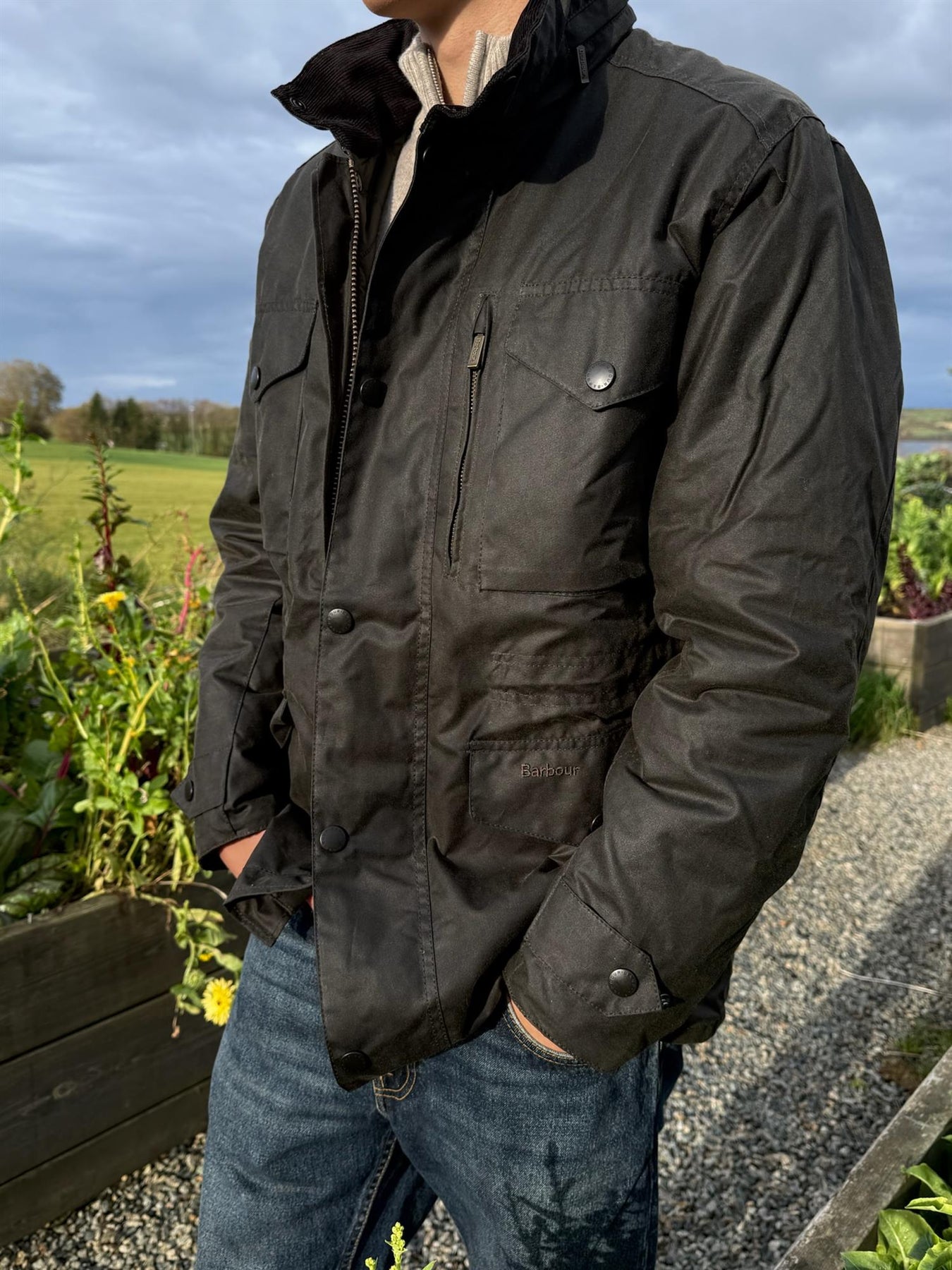 Sapper Wax Jacket fra Barbour er en subtilt skreddersydd versjon av den populære Sapper-jakken. Den er laget i lett Sylkoil-vokset bomull som gir et robust og værbestandig uttrykk, samtidig som den er behagelig å bruke. Jakken kombinerer funksjonalitet med et smart, tidløst design. Den har fire utvendige lommer, snøring i midjen for justerbar passform og en praktisk, nedfellbar hette som gir ekstra beskyttelse mot regn.
