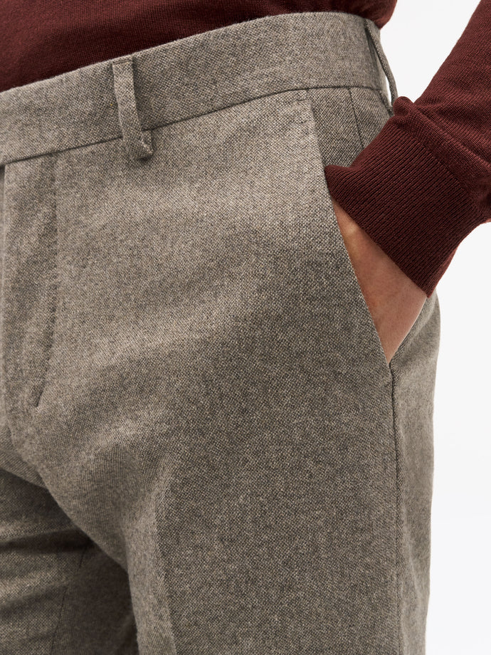 Tenuta bukser fra Tiger of Sweden er et tidløst og sofistikert valg for den moderne mannen. Buksen er designet i en elegant burlywood-nyanse og skapt i en luksuriøs blanding av resirkulert ull og tekniske fibre, som gir både komfort, slitestyrke og et mer bærekraftig fotavtrykk. Med sitt rene snitt og klassiske uttrykk kan Tenuta enkelt styles opp til formelle anledninger eller ned for en mer avslappet look. Den myke ullblandingen gir en behagelig varme og et strukturert uttrykk som holder fasongen gjennom dagen.