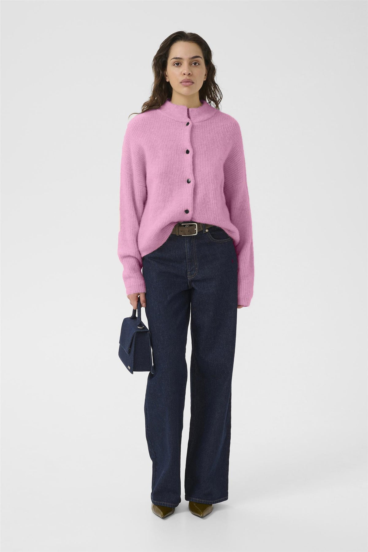 AlphaGZ Short Cardigan fra Gestuz er en myk og fluffy strikkejakke som kombinerer komfort og moderne uttrykk. Cardiganen har en avslappet, kort passform med droppede skuldre, høy ribbestrikket hals og lange ermer som gir et varmt og koselig preg. Lukkes med dekorative knapper i front.