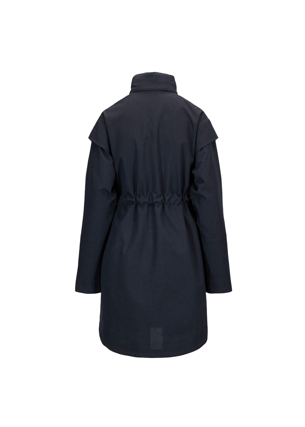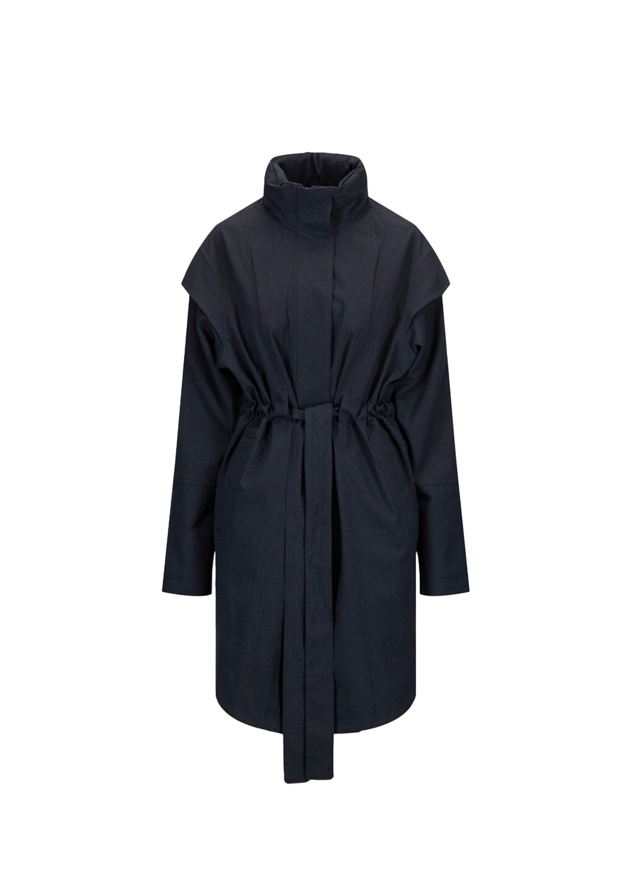 Monsun Regnjakke er en stilfull og funksjonell regnjakke designet for deg som ønsker både beskyttelse og et moderne uttrykk på regnfulle dager. Jakken har en normal til lett oversized passform og er utstyrt med elegante cap sleeves, et praktisk belte i tunnel og en diskret, skjult hette i kragen. Den kombinerer mote og funksjon på en gjennomført måte, og er like anvendelig i byen som på reise.