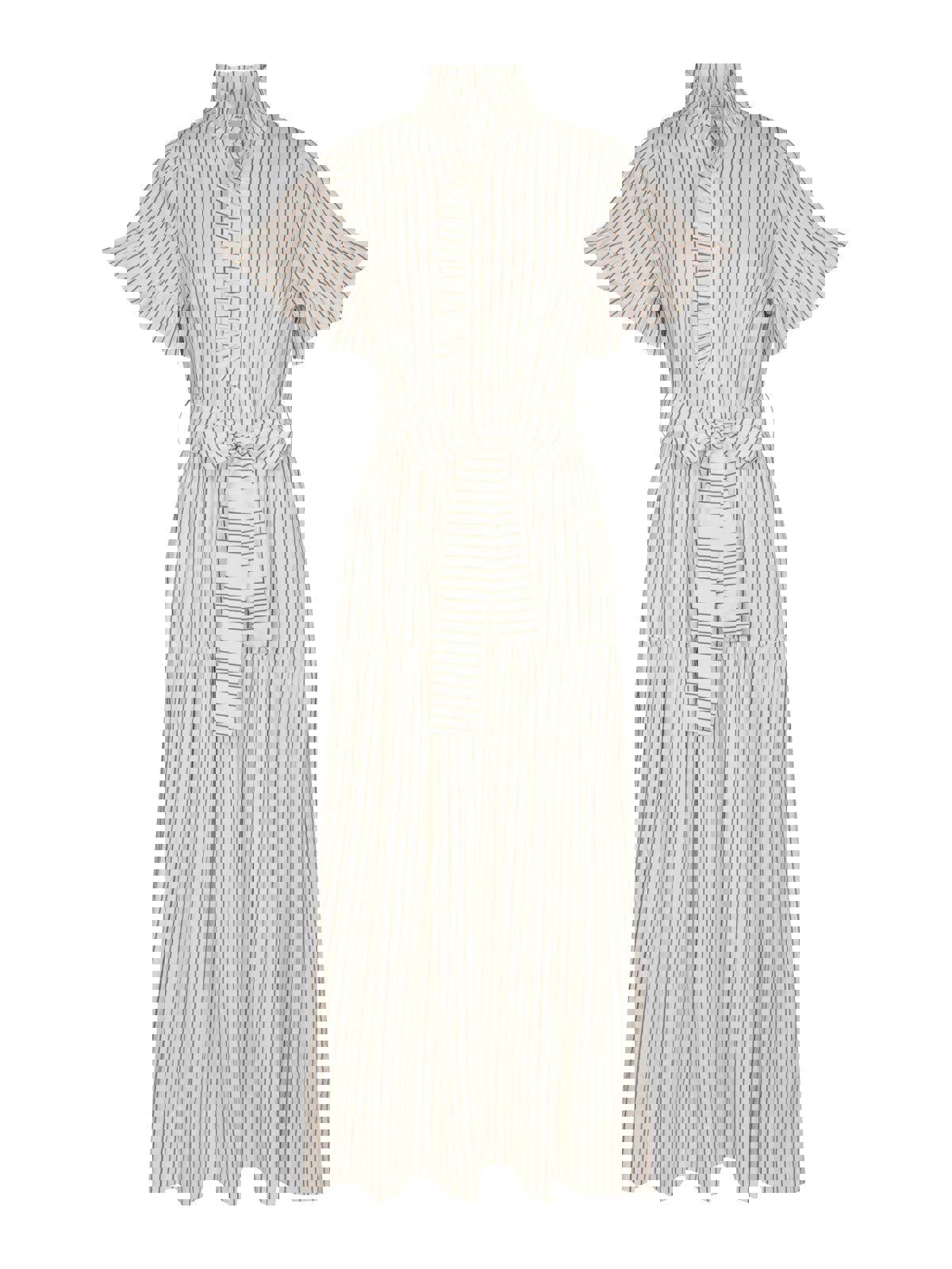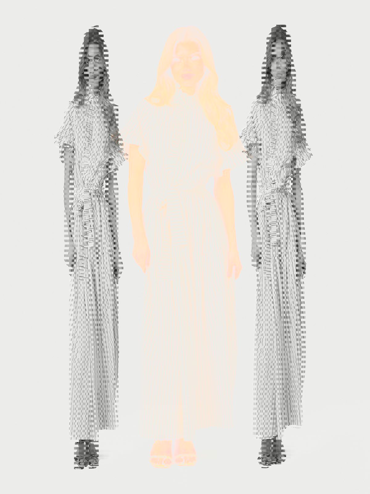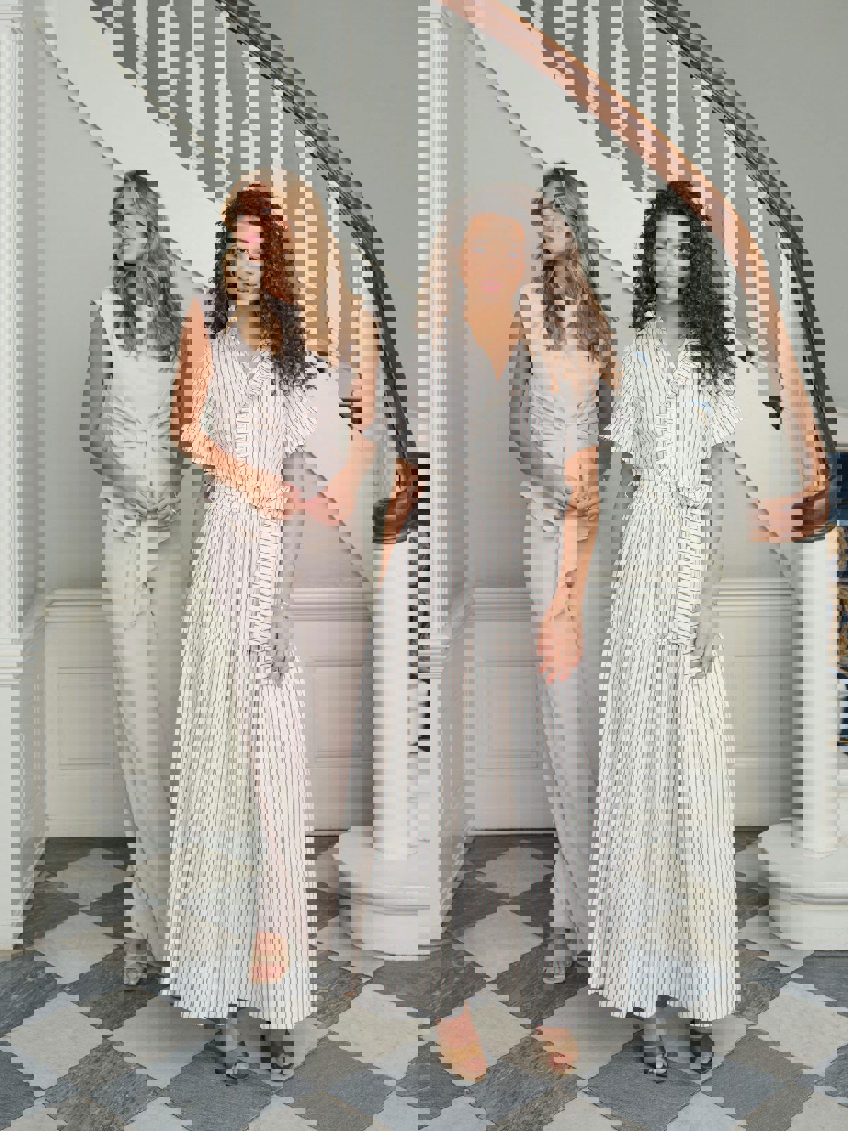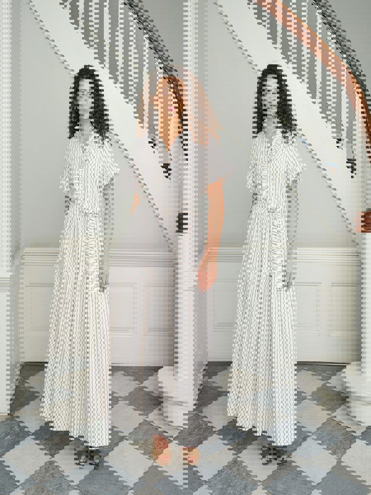 Den delikate elfenbensfargen kombinert med striper gjør kjolen enkel å style til både hverdags og mer pyntede anledninger.
