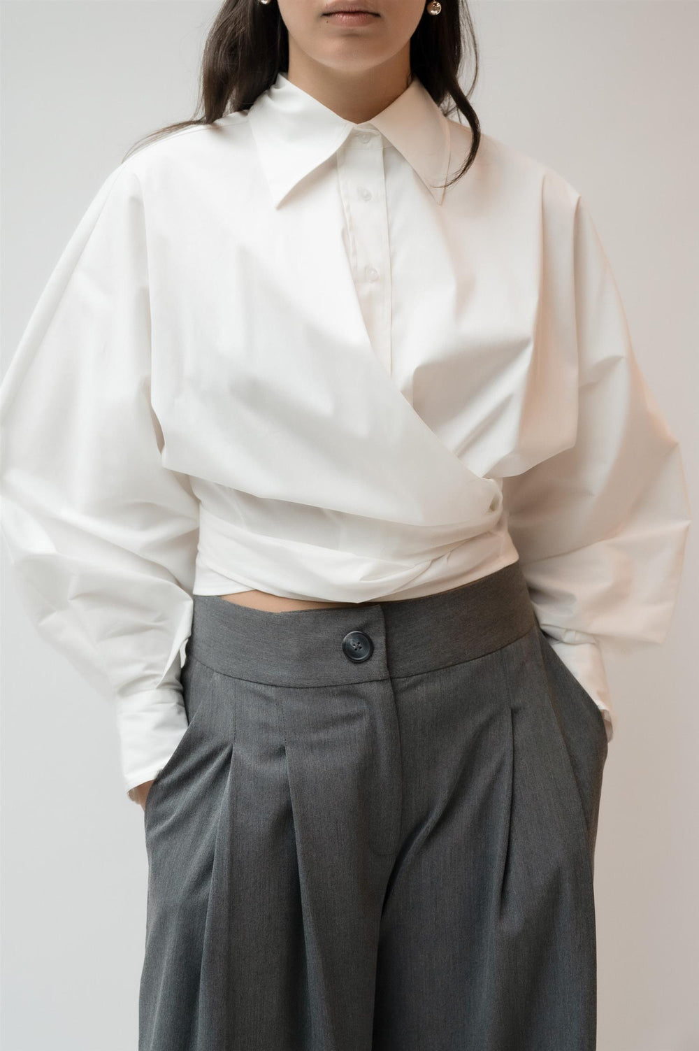 Amara Heavy Satin Bedaz Blouse Dark Taupe