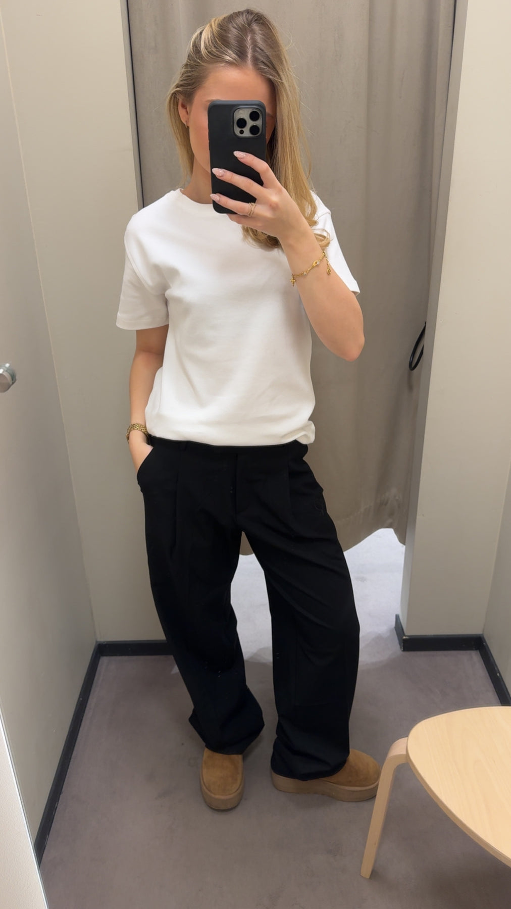 • Materiale: 46 % resirkulert polyester, 39 % viskose, 11 % ull, 4 % elastan