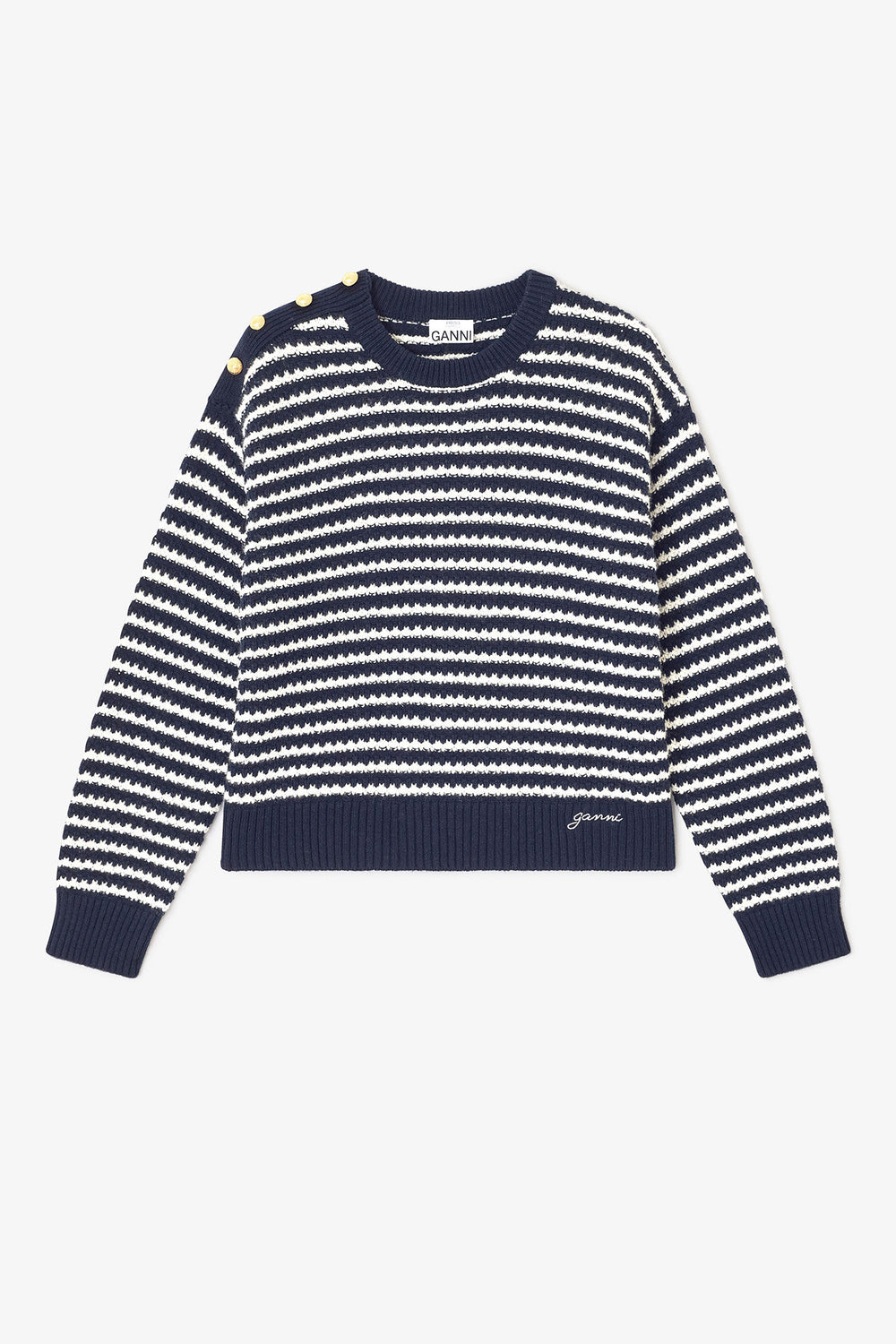 COTTON WOOL STRIPE SWEATER 683 Sky Captain