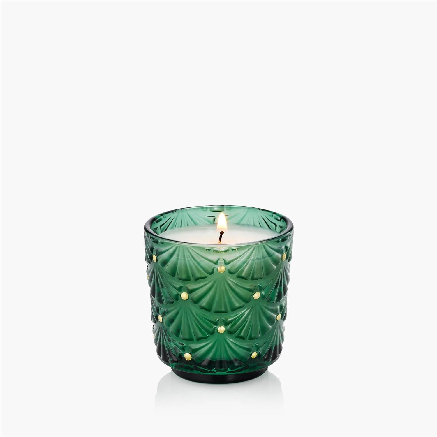 Noble Fir Garland Pedestal Candle fra Voluspa fanger magien av julen på sitt vakreste. Når klokken slår tolv og huset ligger stille, fylles rommet av en duft som fremkaller følelsen av høytid og forventning. En fortryllende miks av smaragdgrønn edelgran og frisk rosmarinkrans rammer inn den varme peisen, mens juletreets duft av Noble Fir og sedertrær blander seg med et hint av festlig kardemomme. Myke toner av cashmere musk og varm amber gir en glødende avslutning – som dansende skygger inn i morgengryet. Duften av jul har ankommet.