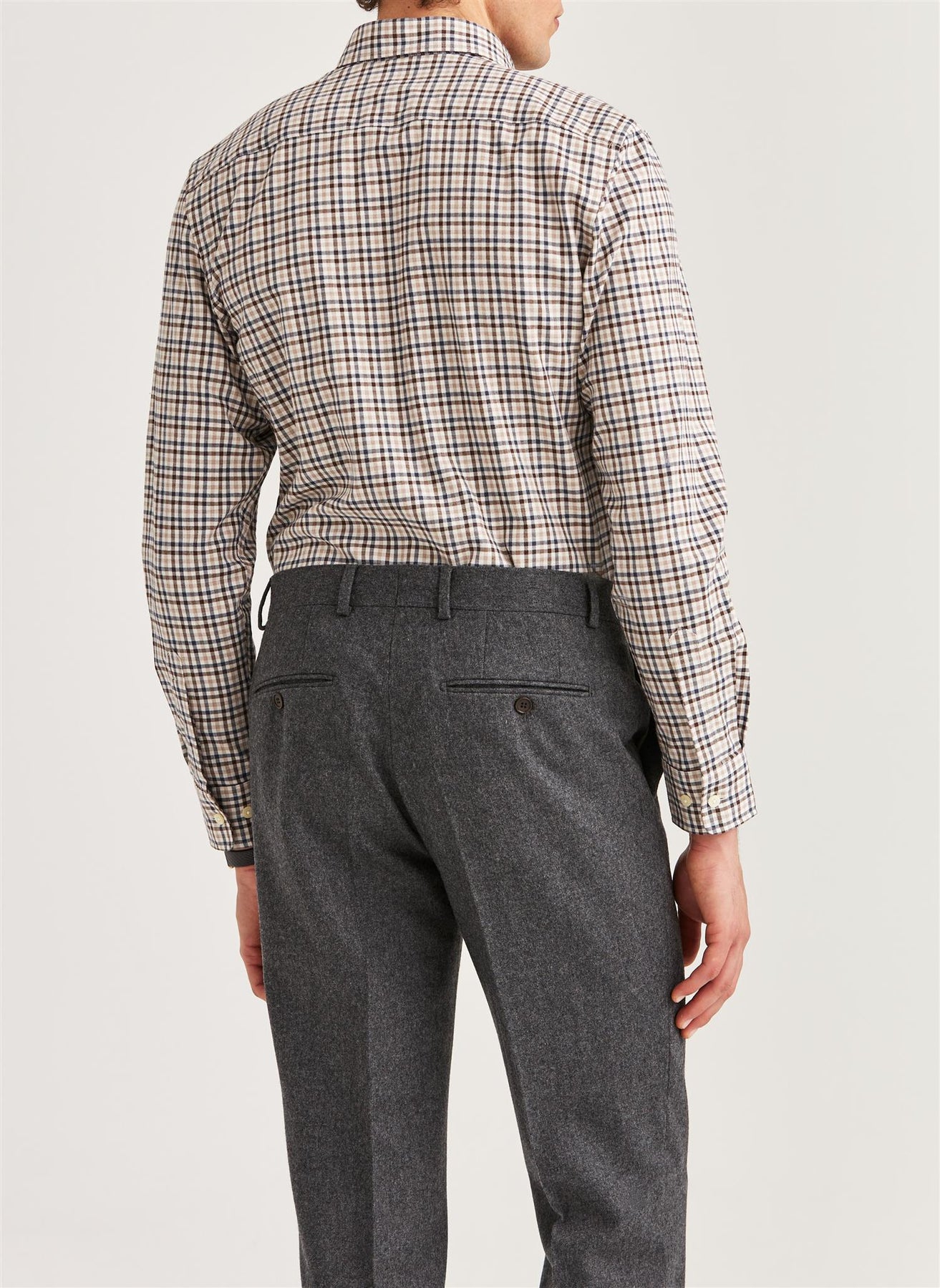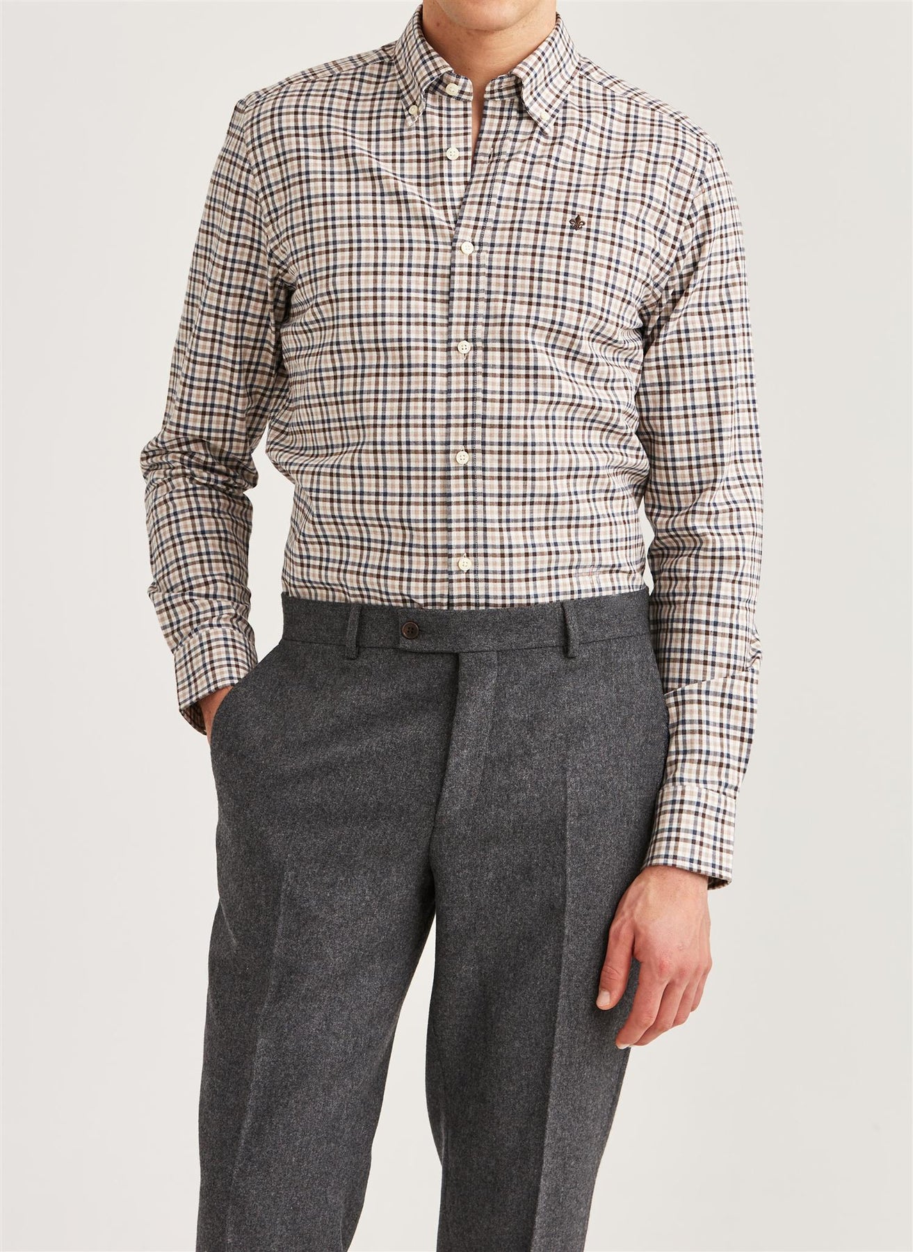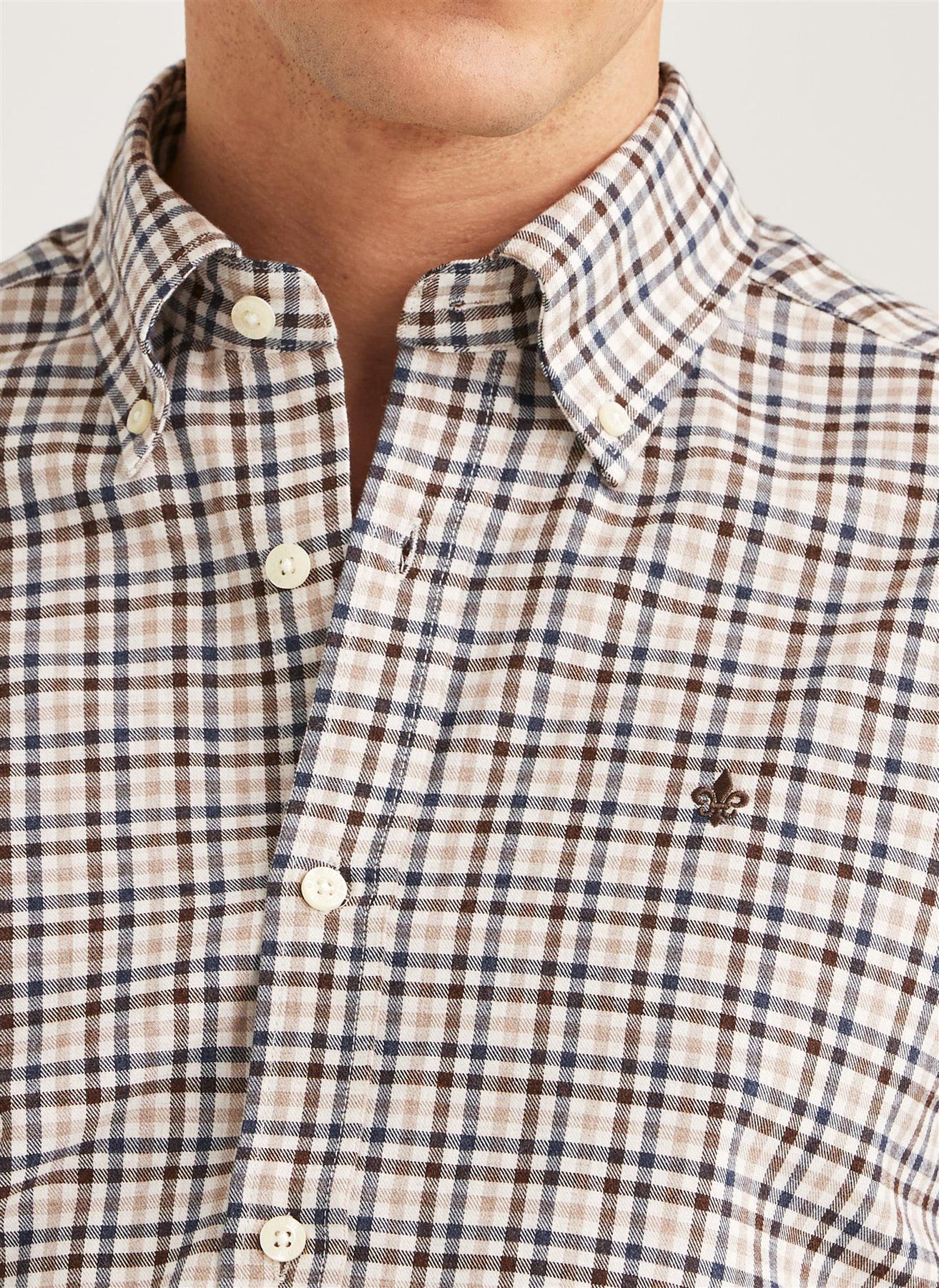 Watts Flannel Check Shirt fra Morris er en stilfull og allsidig skjorte som kombinerer komfort og eleganse. Den er laget i myk, lett bomullsflanell fra en av Morris’ italienske leverandører, og har en slim fit-passform som gir en moderne silhuett. Den klassiske button-down-kragen og den broderte liljen på brystet tilfører et sofistikert preg, samtidig som skjorten beholder en avslappet karakter.