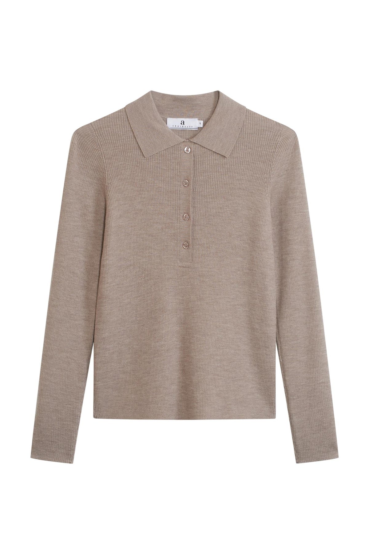 Cielo er en klassisk og tidløs langermet topp fra Arnie Says, laget i 100 % merinoull. Den ribbestrikkede strukturen gir et elegant uttrykk og en smal, kroppsnær passform som fremhever silhuetten. Det myke og pustende materialet sørger for høy komfort, mens kragen og knappestolpen tilfører et preppy og sofistikert preg. Perfekt alene eller som base i et lag-på-lag-antrekk.