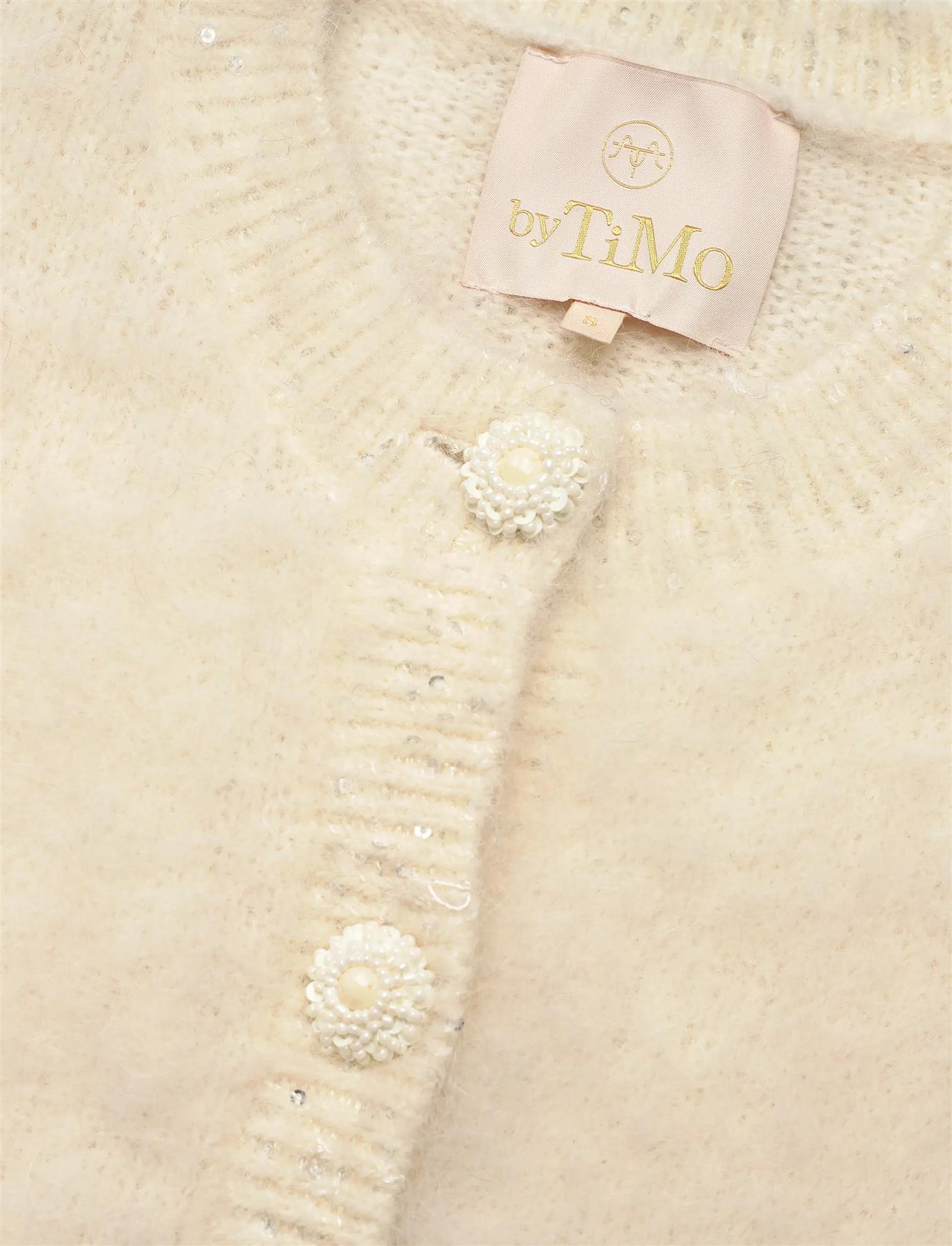 Hairy Knit Puffed Jacket fra by TiMo er en kort, feminin jakke laget i en myk og fluffy garnblanding med RAS-sertifisert ull. Jakken har en cropped og ettersittende silhuett med korte, puffede ermer og elastiske mansjetter som skaper et elegant volum. Den runde halsen, ribbestrikken i kantene og de dekorative knappene foran gir et raffinert og eksklusivt uttrykk.