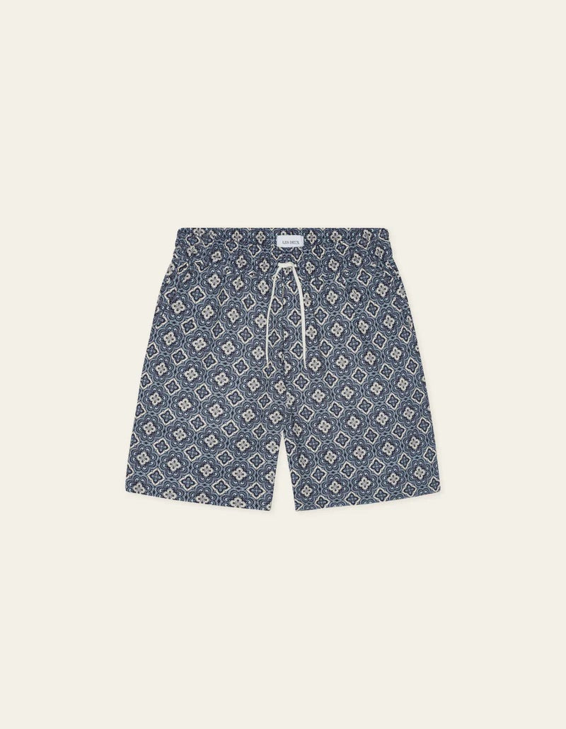 Harry Arabesque AOP Shorts fra Les Deux er casual sommershorts i myk, strukturert økologisk bomull. Det heldekkende arabeskmønsteret gir et raffinert uttrykk, mens den avslappede silhuetten og snøringen i livet sørger for høy komfort. Perfekt til varme dager – enten alene eller stylet med en enkel t-skjorte eller skjorte.