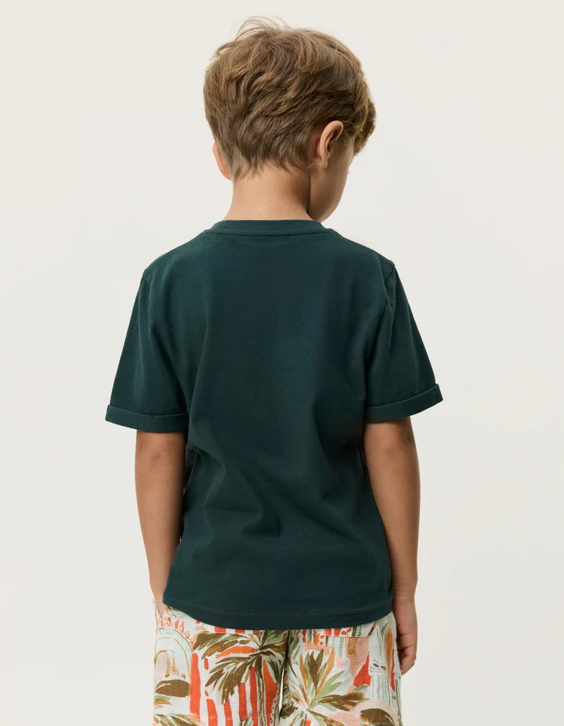 En miniutgave av den klassiske t-skjorten, designet for komfort og stil i en aktiv hverdag. Laget i myk, økologisk bomull som gir en behagelig følelse mot huden og god pusteevne. T-skjorten har en regular fit som gir god bevegelsesfrihet, og oppbrettbare ermer tilfører en avslappet og moderne detalj. Den kontrastbroderte logoen på brystet gir et subtilt, stilrent uttrykk. Et perfekt baseplagg for unge eventyrere – enkelt å style til både lek og hverdagsbruk.