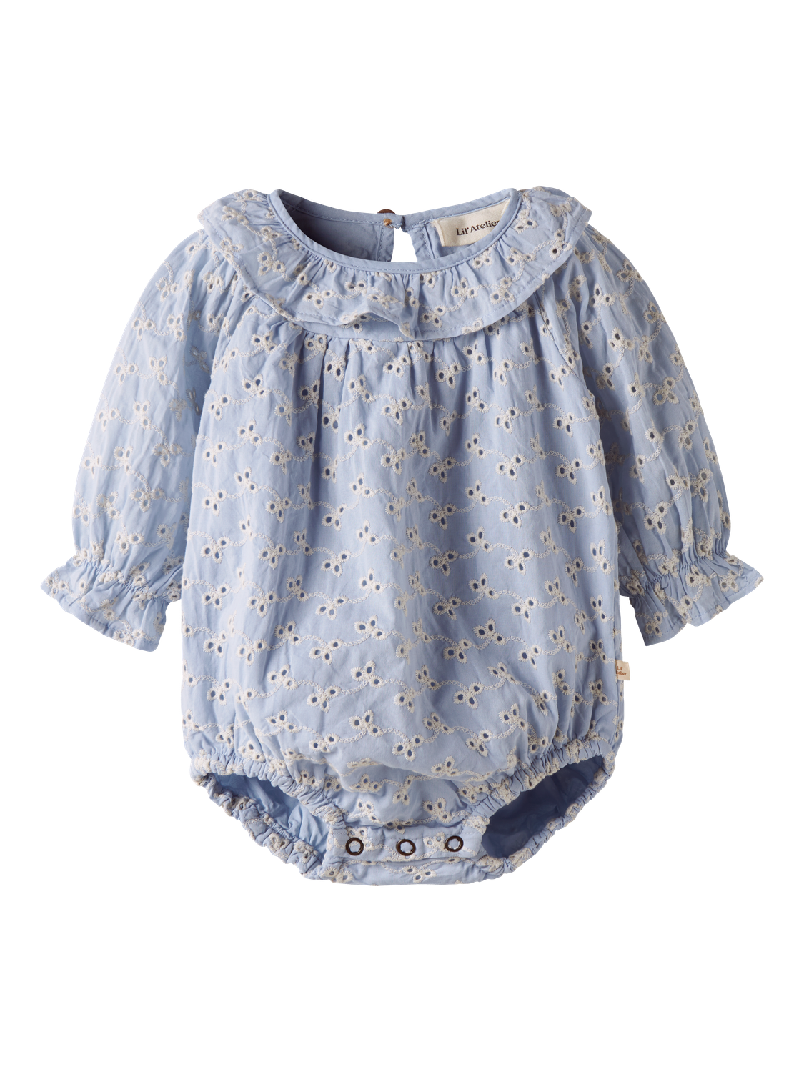 NBFTESSIE LS Loose Body fra Lil’ Atelier er en nydelig og romantisk body med vakre broderie anglaise-detaljer. Det løse snittet gir god komfort og bevegelsesfrihet, mens de elastiske mansjettene og den rynkede kragen skaper et søtt og elegant uttrykk. Perfekt både til hverdags og spesielle anledninger.