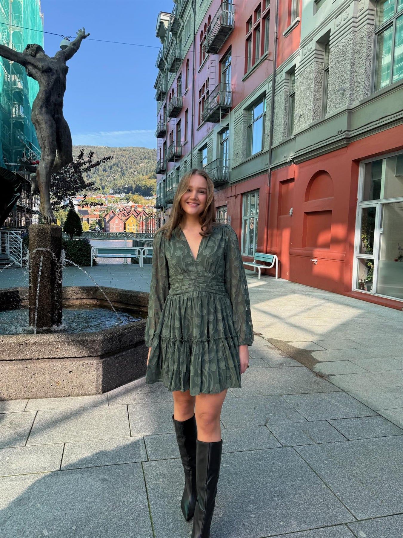 Noor Dress fra Missmaya er en feminin kjole laget i lett georgette-polyester. Kjolen har en minilengde og en flatterende silhuett med tettsittende midje, plisserte detaljer og vaffelsøm bak som gir en behagelig passform. Lange puffermer med elastiske mansjetter tilfører et romantisk preg, mens V-halsen gir et sofistikert uttrykk. Kjolen lukkes i siden med glidelås for en sømløs finish. En tidløs kjole i en frisk grønnfarge, perfekt til både hverdags og fest.
