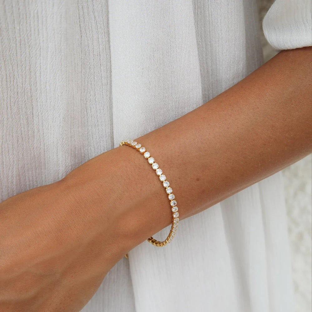 Mini zara bracelet fra Caroline Svedbom er et armbånd med et delikat stykke som legemliggjør essensen av kjærlighet og eleganse med sin sofistikerte design. Armbåndet er utsmykket med cubic zirconia, en edelsten kjent for sin glans og krystallklarhet. Dette syntetiske krystallinske materialet sikrer at edelstenene er eksklusivt laboratorieskapte, og tilbyr et bærekraftig og fantastisk alternativ til diamanter.