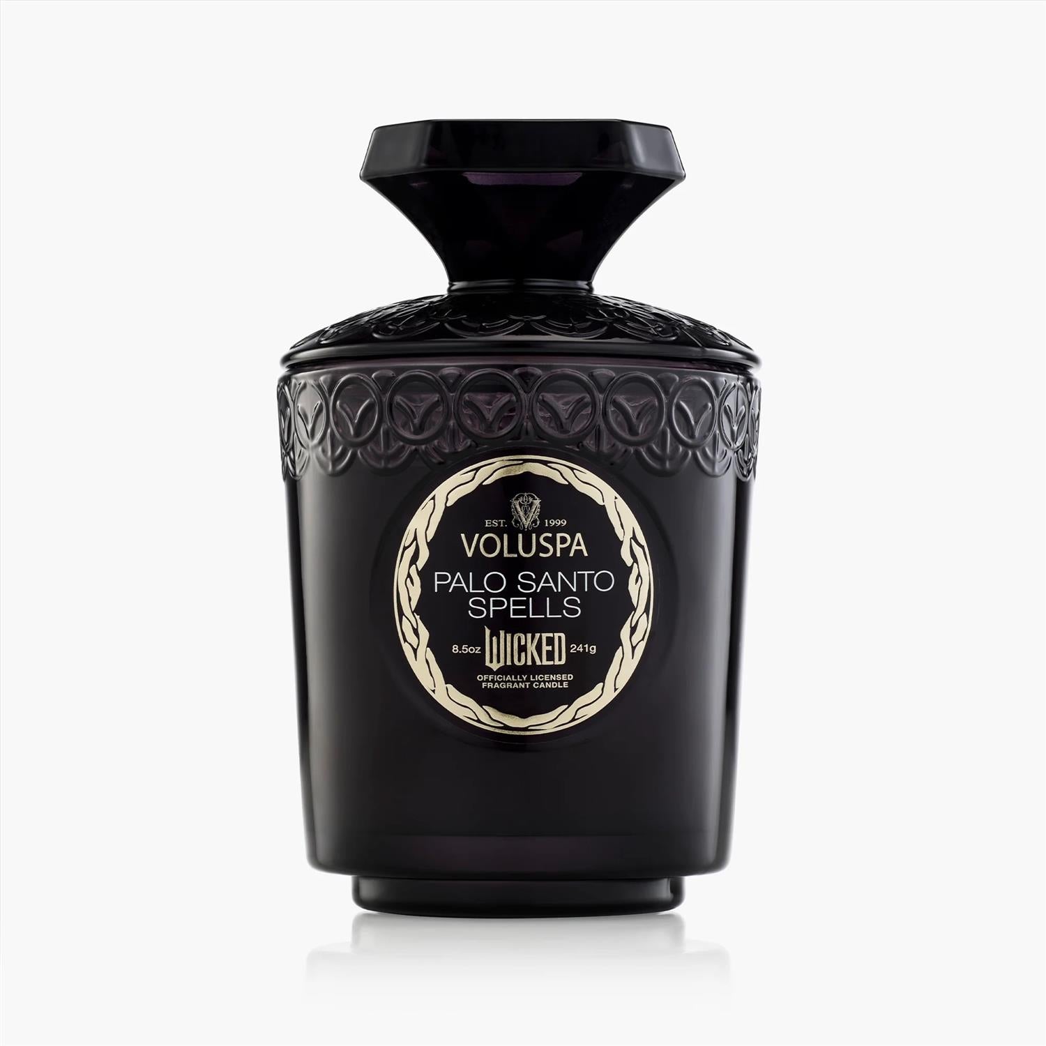 Palo Santo Spells Boxed Candle er en varm og krydret duft fra Voluspa, skapt i samarbeid med filmen Wicked. Med noter av knust nellik, palo santo, røkelse og eikemose får du en rik, mystisk aroma som løfter stemningen og skaper en magisk atmosfære i hjemmet.