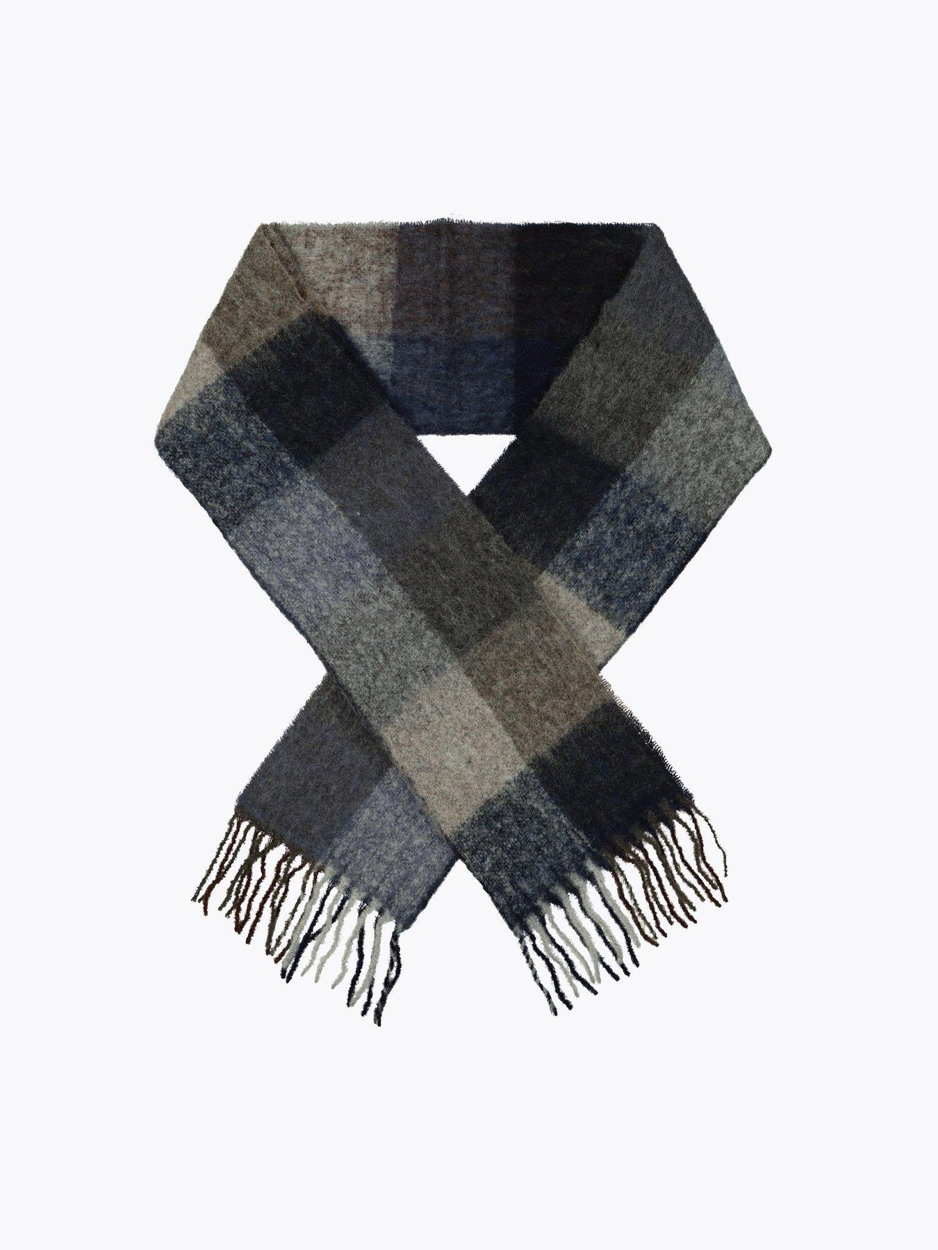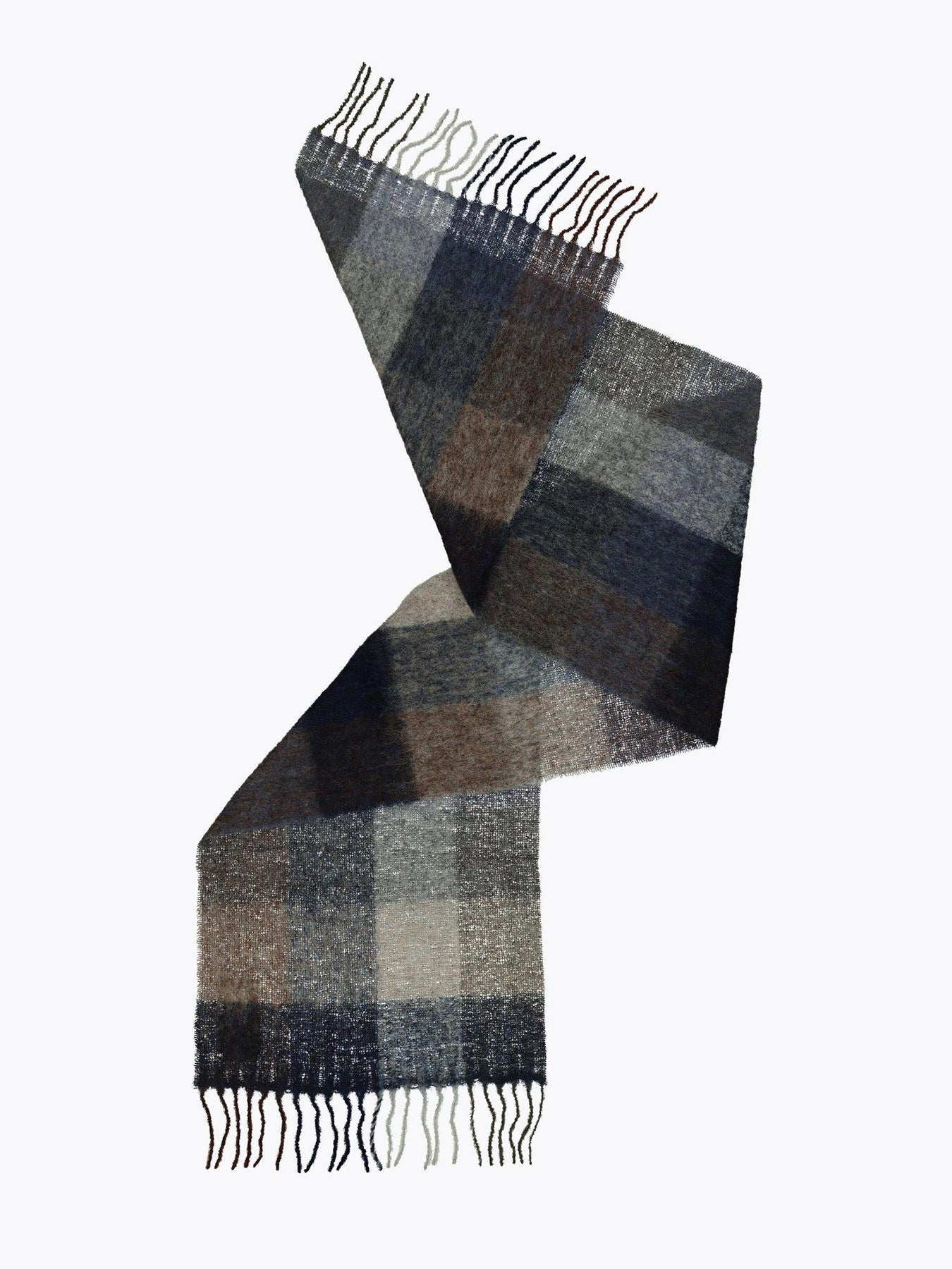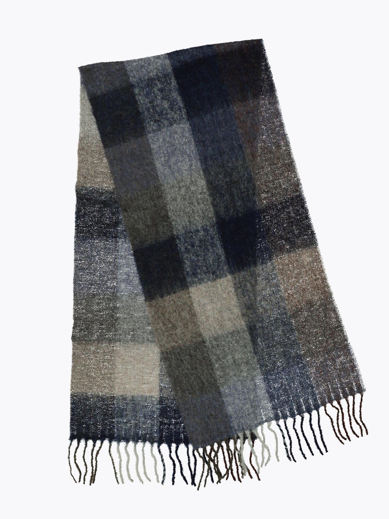 Warm and soft fresia check scarf. Made in an alpaca and mohair blend. Made in Italy. Size: 45 cm x 210 cm.