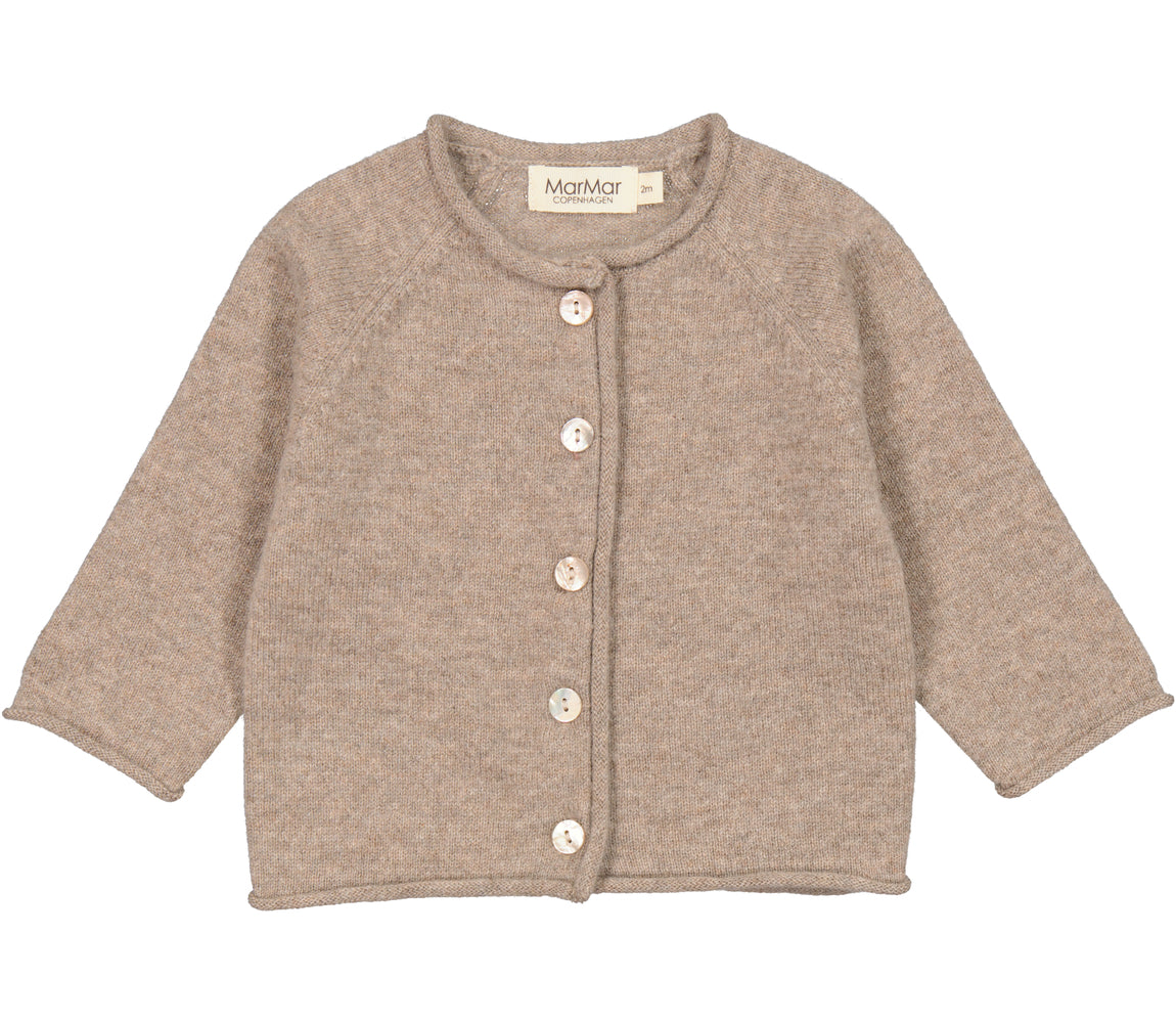 Tamla Cashmere fra Marmor. Cardigan med knappelukking, rullekant og raglan-ermer