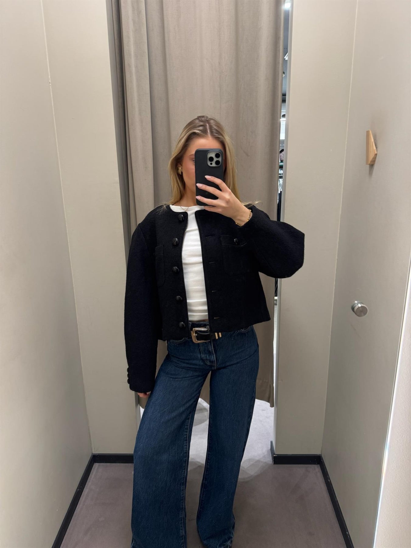 PIA TJELTAs LOUVRE BOUCLÈ er en sofistikert jakke som kombinerer håndverksmessig kvalitet med moderne design. Laget i en luksuriøs 50% ull og 50% viskose-blanding, tilbyr denne jakken både varme og en elegant fall. Den dype svarte fargen gir den en tidløs appell som passer til enhver anledning.