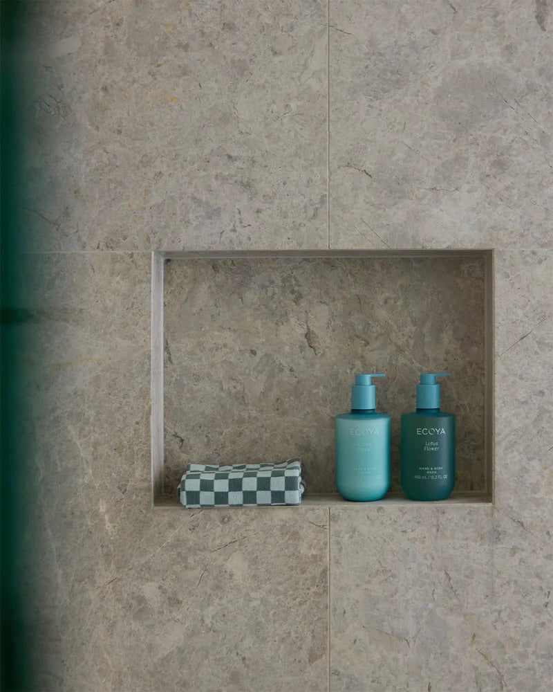ECOYA Hand & Body Wash – Lotus Flower er en luksuriøs og velduftende såpe som rengjør huden skånsomt samtidig som den tilfører fuktighet og pleie. Den delikate duften kombinerer friskhet og varme i en harmonisk blanding av lotusblomst, vanilje og patchouli – en beroligende, spa-lignende opplevelse som gjør den perfekt til daglig bruk. Formelen er beriket med nærende botaniske ingredienser som macadamia- og kokosolje, som etterlater huden ren, myk og hydrert. For en helhetlig duftopplevelse kan den med fordel brukes sammen med tilhørende hånd- og kroppslotion.