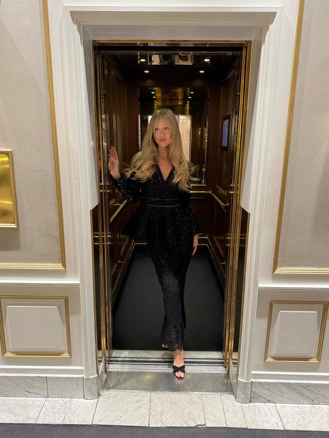 Elie Top fra Love Lolina er en elegant og sofistikert blusetopp laget i sort blondestoff med delikate paljetter som tilfører et subtilt hint av glimmer. Toppen har en feminin V-hals og lange ermer, med kantdetaljer langs midje, ermer og fald som gir et raffinert uttrykk. Den tilpassede passformen fremhever silhuetten på en smakfull måte, perfekt til både festlige anledninger og elegante kvelder. Passer med Freya maxi skirt.