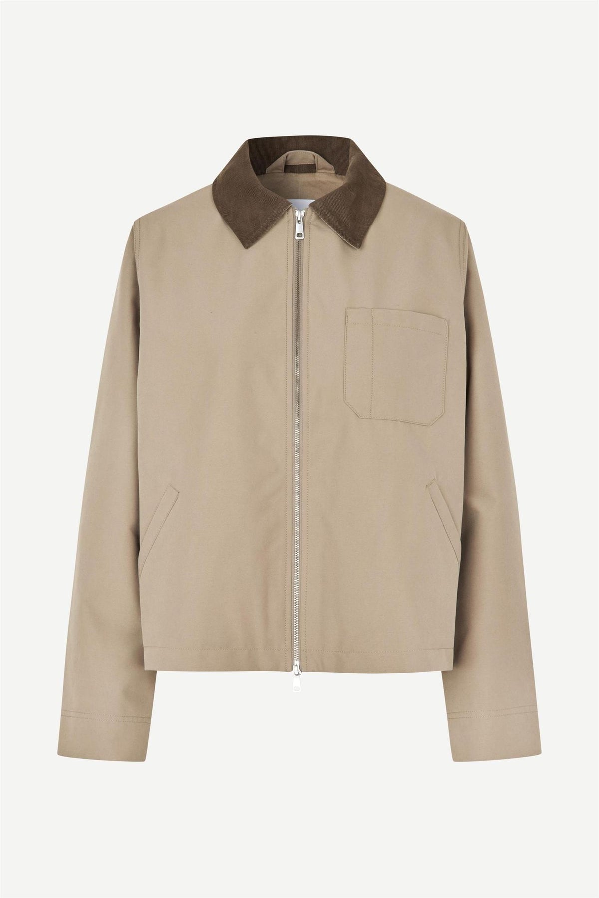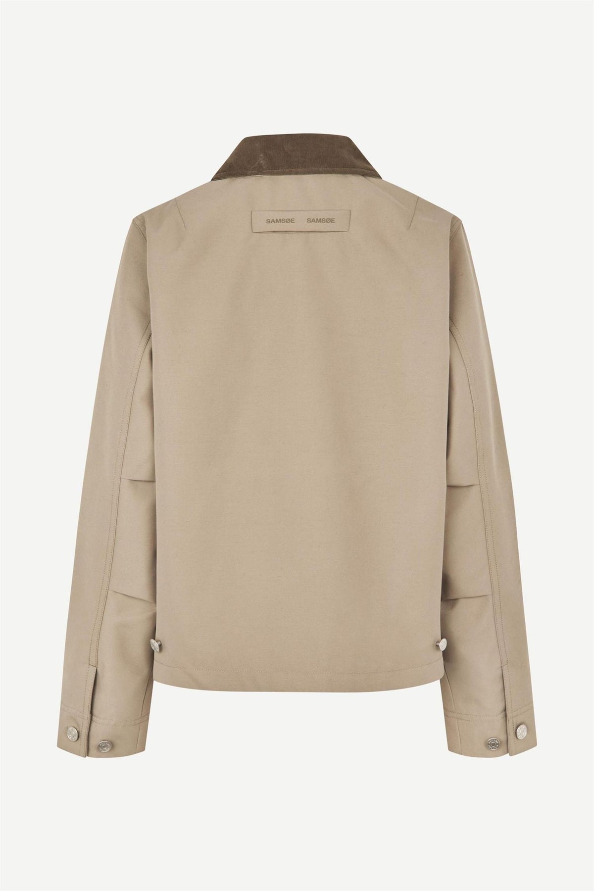 Sarobinson Jacket 14265 fra Samsøe Samsøe er en moderne og funksjonell jakke med et rent og sofistikert uttrykk. Den elegante greige-nyansen – en balansert blanding av grått og beige – gjør jakken allsidig og enkel å style til både hverdags og mer gjennomførte antrekk. Jakken har regular fit og lukkes med glidelås i front. Den kontrastfargede, spisse kragen i bomull gir et raffinert preg, mens knappede mansjetter og rett fald med justerbare sidehemper sørger for fleksibel tilpasning. Designet er utstyrt med en påsydd brystlomme og skrå stikklommer foran, samt en logo-merket patch bak i nakken for en subtil signaturdetalj.