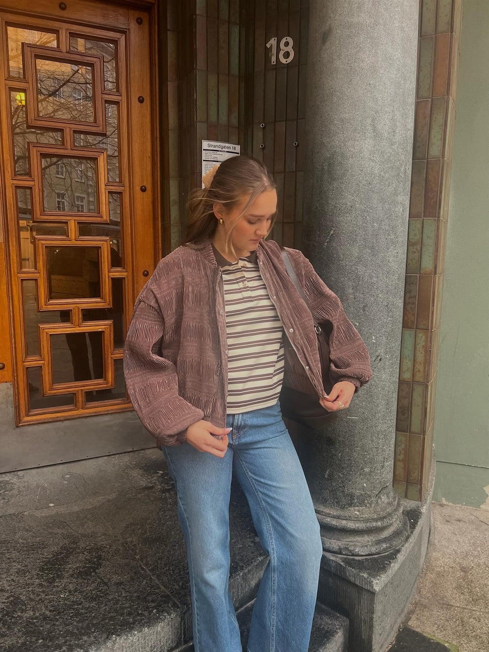 Rigid Denim Padded Peplum Jacket Mid Blue Vintage