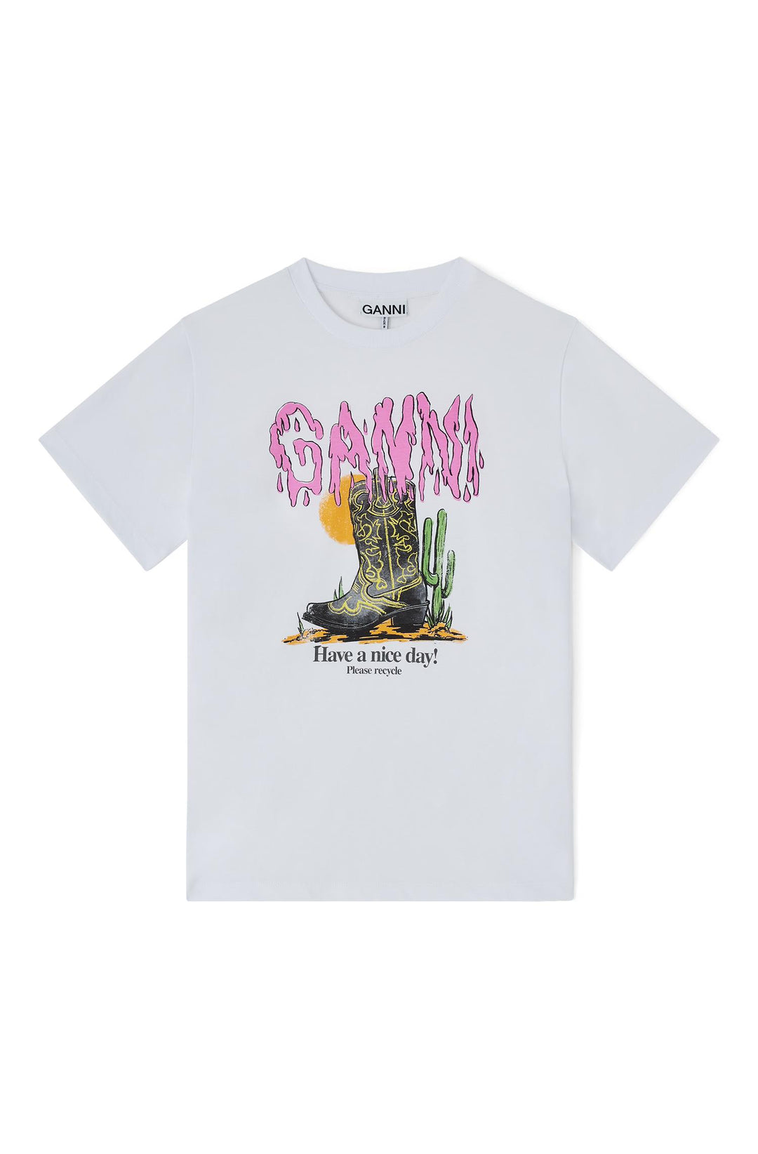 Basic Cotton Jersey T-shirt Boots Print Bright White