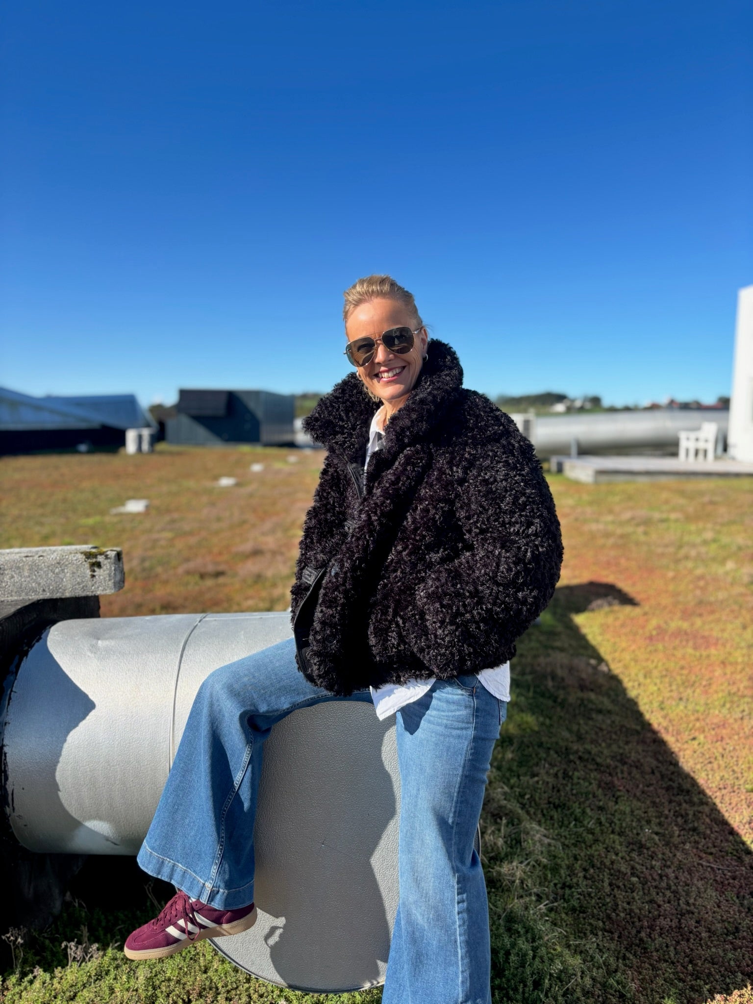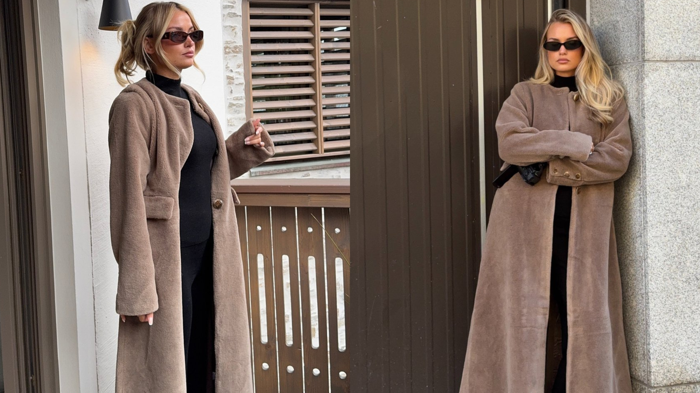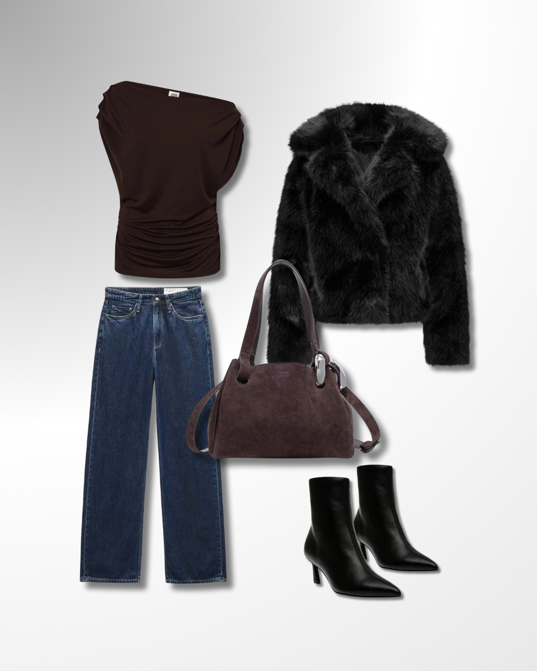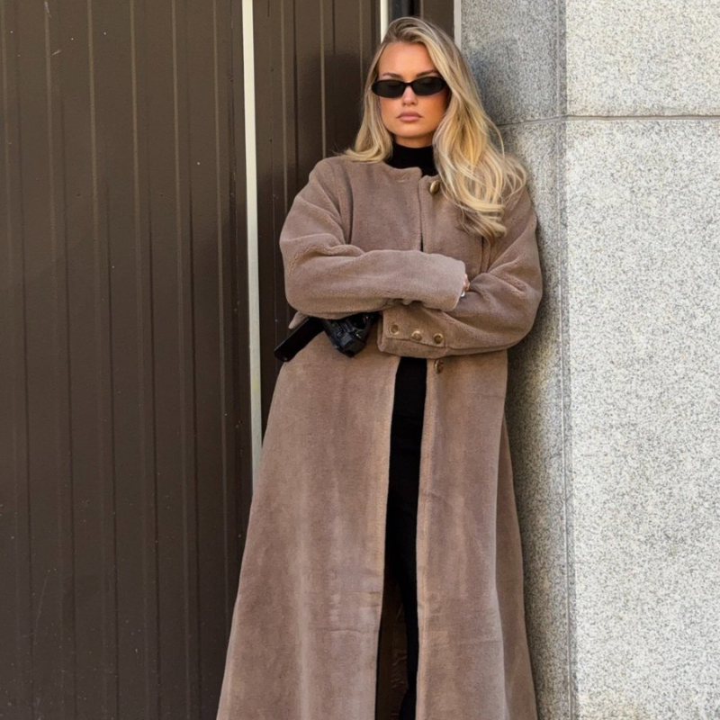 Kombinasjonen av dype coffe brown-toner, semsket skinn og sesongens mest trendy fuskepels gjør dette antrekket både tidløst og moderne. Perfekt miks av komfort og eleganse.