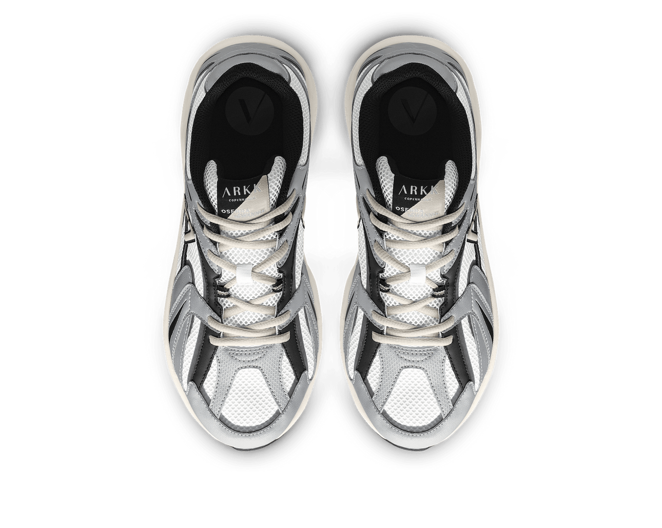Oserra Mesh S-SP fra ARKK COPENHAGEN er en detaljert silhuett med en blanding av friluftsnett og flerlags veganske skinnlapper som kombinerer komfort, letthet og pusteevne.