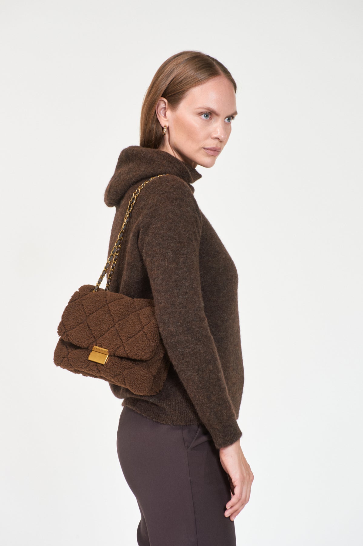 Charlie Teddy Bag fra Arnie Says er en moderne og stilren veske med myk teddytekstur som gir et lunt og eksklusivt uttrykk. Den klassiske silhuetten kombineres med en elegant metallisk lukking som tilfører et raffinert preg. Vesken er designet for å være både funksjonell og tidløs – perfekt som et chic hverdagsaccessoir eller som et mykt kontrastelement til et mer pyntet antrekk.