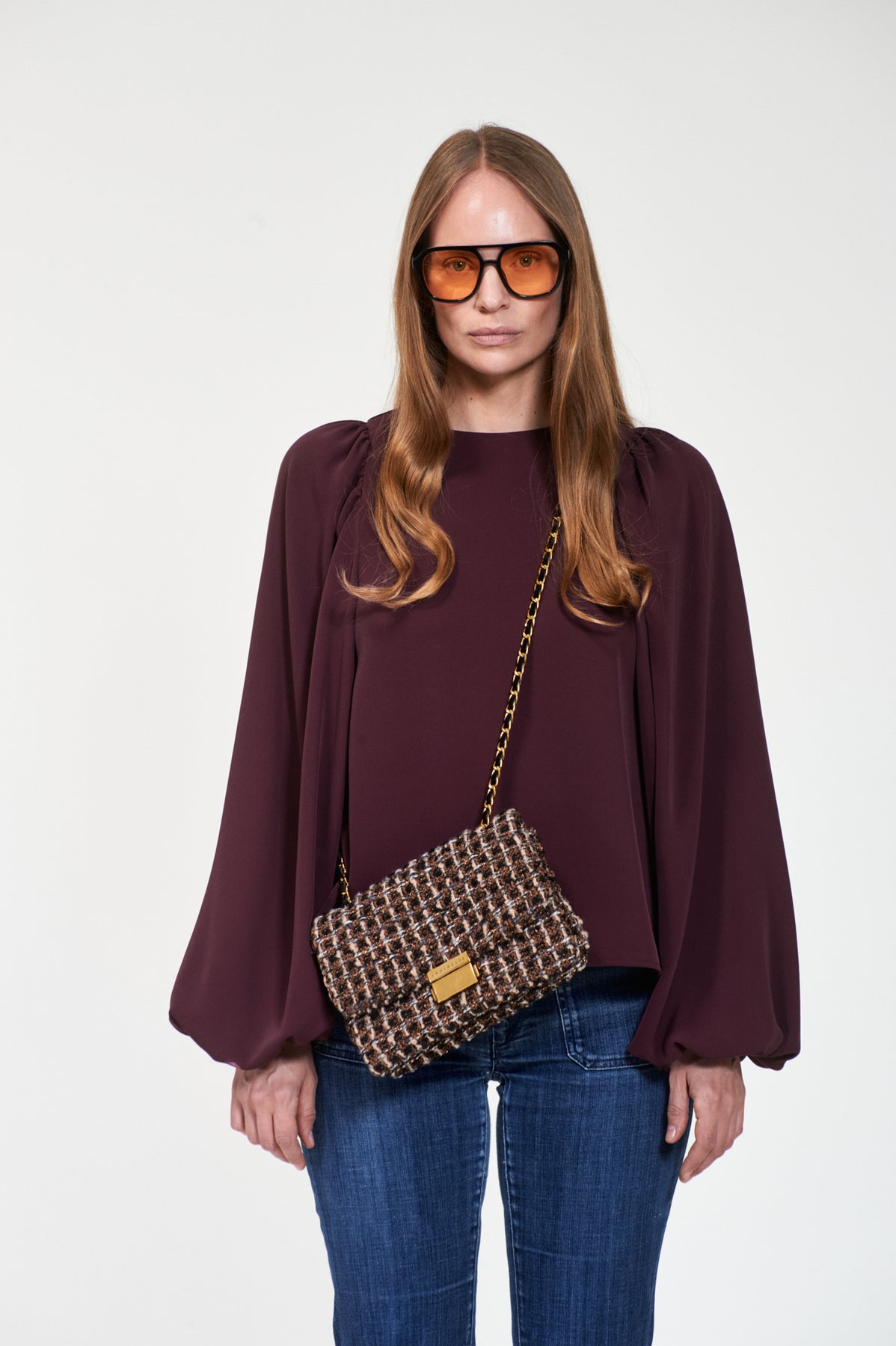 Charlie Tweed Bag fra Arnie Says er en tidløs og elegant veske i klassisk tweed som gir antrekket et sofistikert løft. Den metalliske lukkingen tilfører et eksklusivt preg, mens den strukturerte silhuetten gjør vesken like fin til hverdags som til kveldsbruk. Designet kombinerer funksjon og stil på ekte Arnie Says-vis – perfekt for deg som ønsker et moderne uttrykk med klassiske referanser.