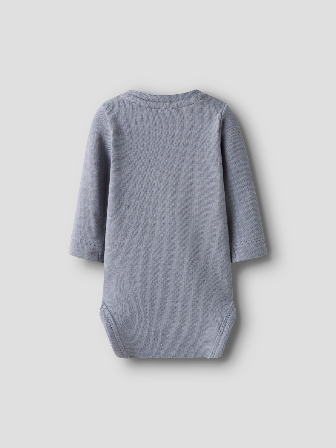 Bodyen har rund hals, lange ermer og praktisk trykknapplukking nederst som gjør den enkel å ta av og på. Den mellomblå fargen Tradewinds gir et rolig og tidløst uttrykk som passer til enhver anledning.