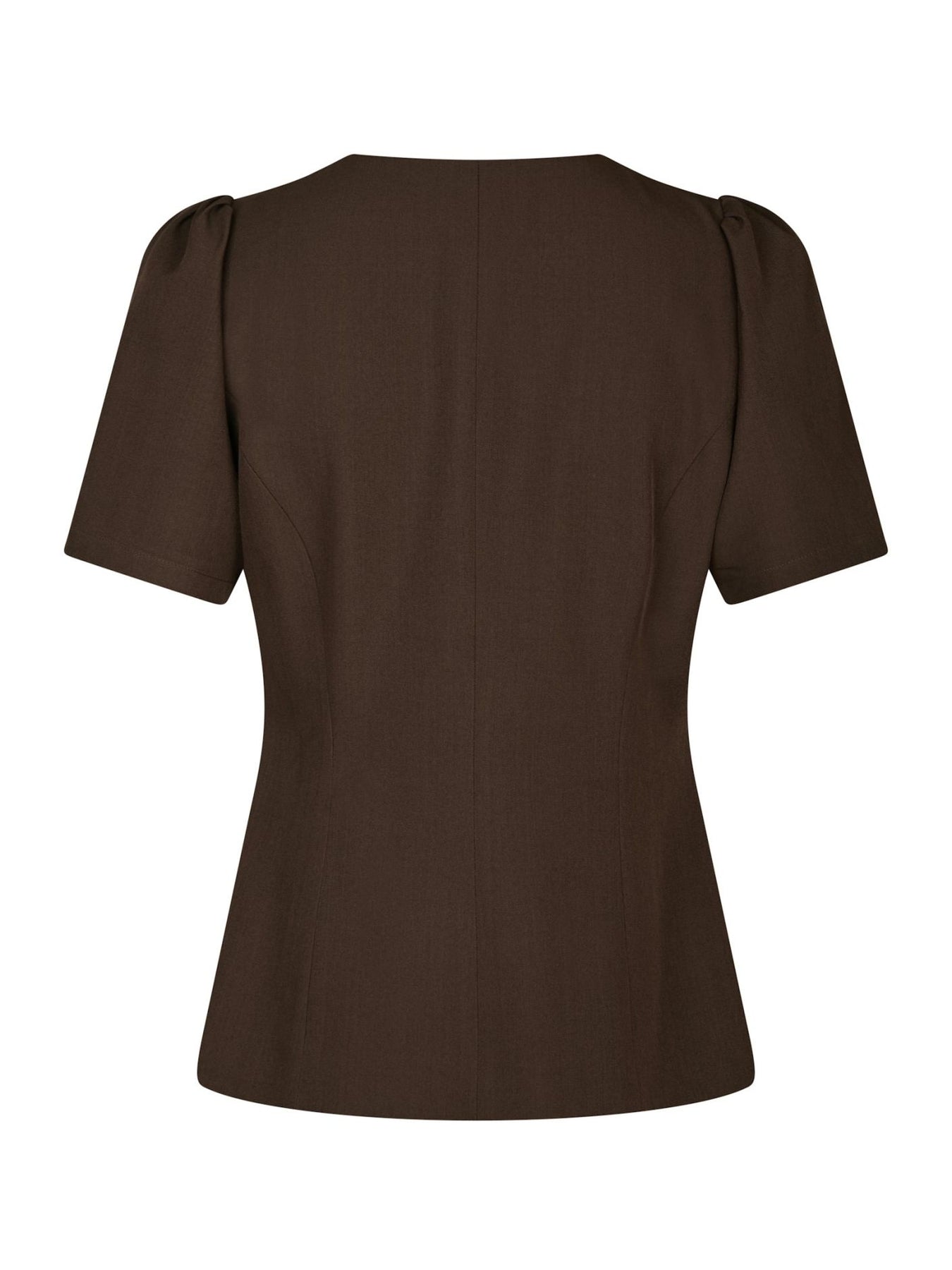 Jules Structure Blouse fra Neo Noir er en elegant bluse med strukturert stoff og en sofistikert mørkebrun farge. Den tidløse silhuetten kombinert med en komfortabel polyesterblanding med elastan gir både stil og bevegelsesfrihet. En allsidig bluse som passer perfekt både til hverdags og mer festlige anledninger.