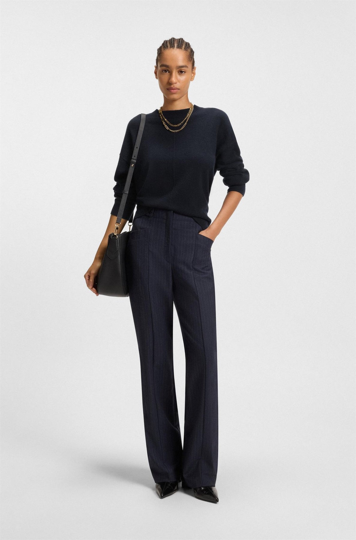 Fascona fra BOSS Womenswear er en luksuriøs genser med rund hals, strikket i myk kasjmir. Den sorte fargen gir et sofistikert uttrykk, mens den rene og tidløse designen gjør genseren til et allsidig basisplagg i garderoben. Perfekt alene eller lag-på-lag for en avslappet, men elegant look.