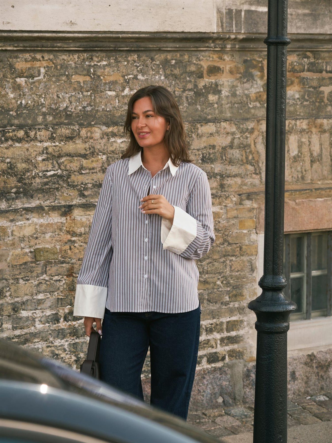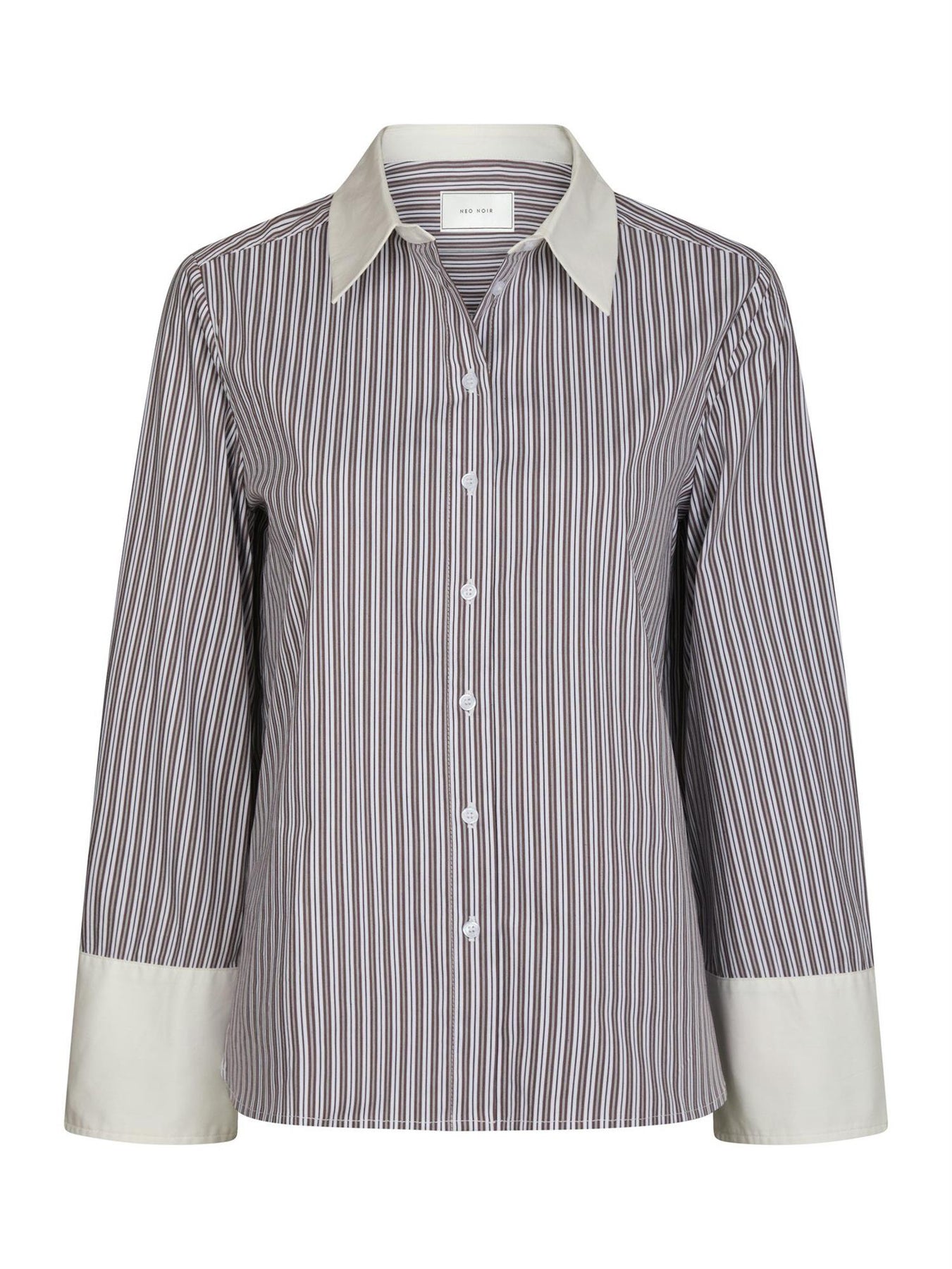 Dranila Stripe Shirt fra Neo Noir er en tidløs skjorte med en løs og komfortabel passform. Den har et moderne design med stripemønster på både kropp og ermer, kombinert med ensfargede kontrastdetaljer på krage og mansjetter. Skjorten er laget i en myk og stretchy bomullsblanding som gir både pusteevne og komfort. Perfekt å style til både jeans og dressede bukser for en avslappet, men sofistikert look.