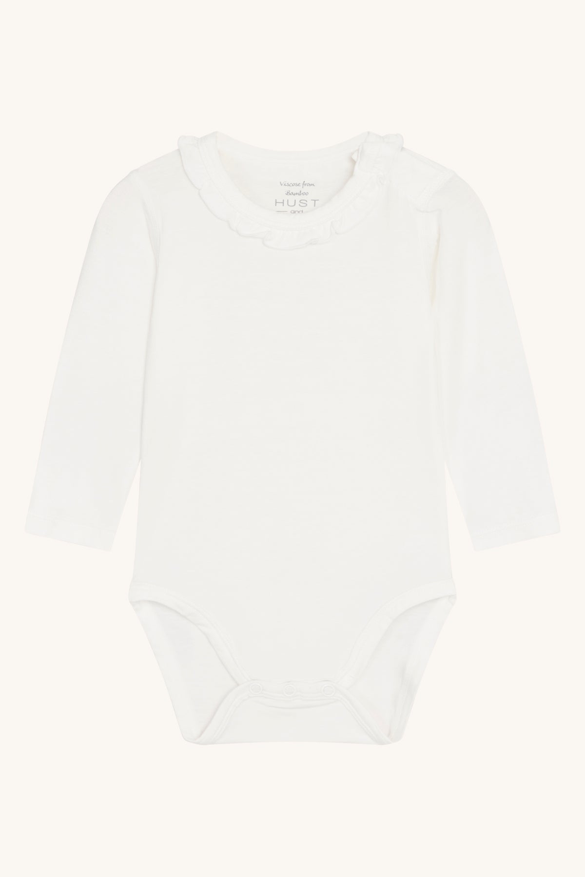 Buller Flounce fra Hust & Claire er en myk og komfortabel body i den delikate nyansen ivory. Den har en søt flouncedetalj som gir et feminint og sjarmerende uttrykk, perfekt til både hverdags og små anledninger.