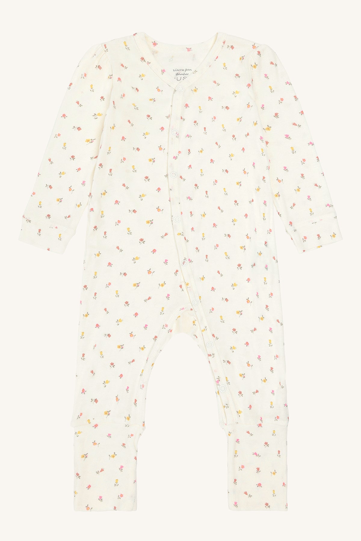 Mulle Vintage fra Hust & Claire er en myk og komfortabel pysjamas i en delikat ivory-nyanse med små, søte blomster som gir et romantisk og tidløst uttrykk.