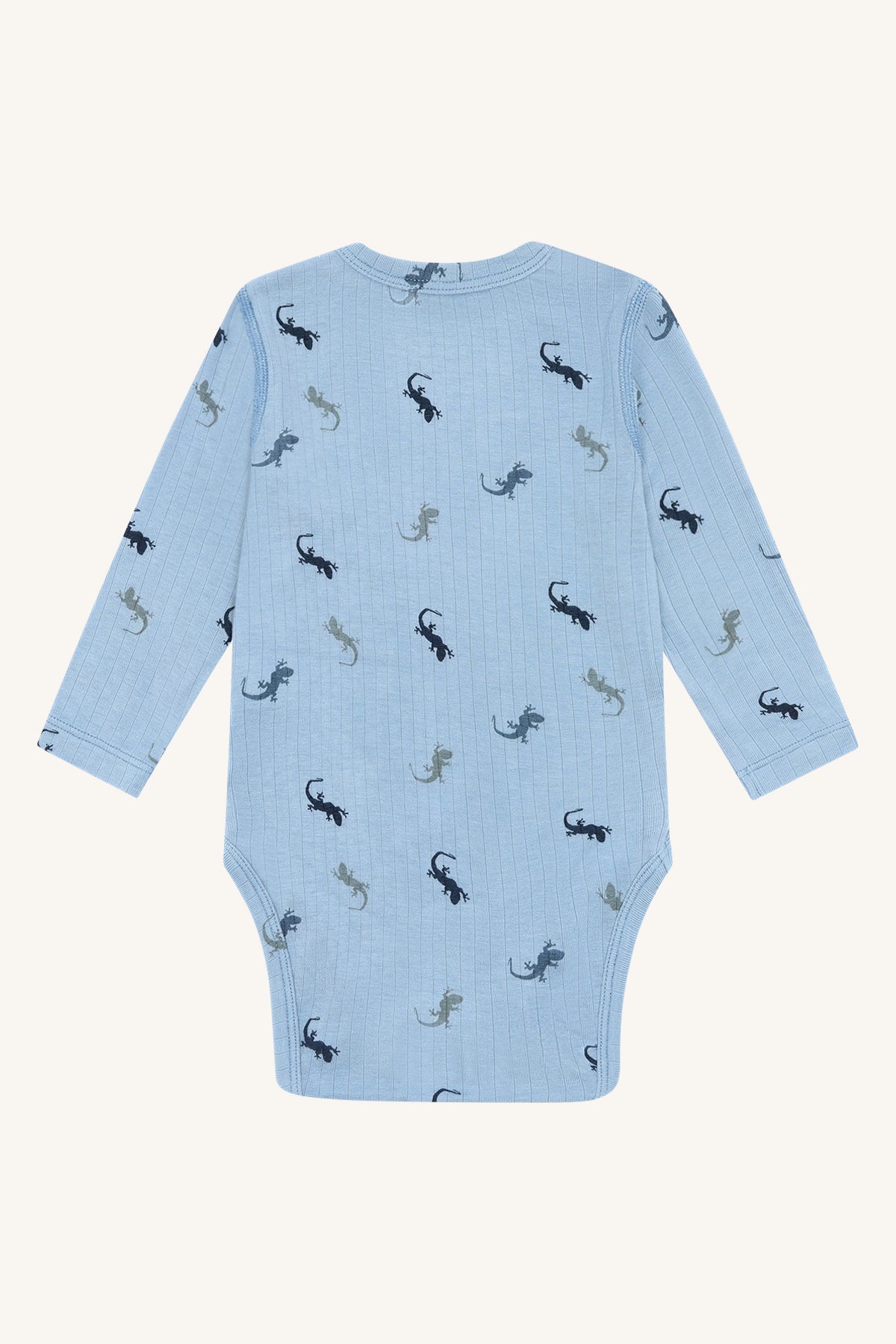 Buller Lizards fra Hust & Claire er en myk og komfortabel body med et lekent øgleprint som gir et morsomt og barnevennlig uttrykk. Den lyseblå fargen skaper en frisk og rolig base som passer perfekt i hverdagsgarderoben.
