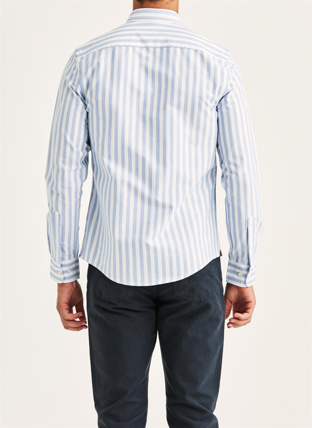Douglas Oxford Stripe Shirt fra Morris Stockholm hyller arven fra britisk preppy-stil. Skjorten er vevd i myk bomulls-Oxford med tidløse striper og kombinerer klassisk campus-inspirasjon med moderne eleganse.