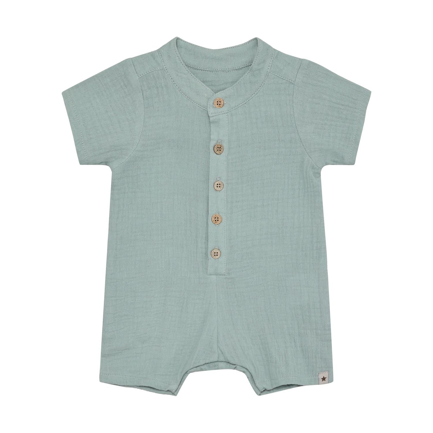 Romperen har rund hals og knappelukking i front som gir et klassisk uttrykk og gjør den enkel å ta av og på. Trykknapper nederst gjør bleieskift raskt og praktisk. Den myke og luftige muslinkvaliteten føles behagelig mot huden og gir god komfort gjennom hele dagen. Produktet er sertifisert i henhold til OEKO-TEX® STANDARD 100, som betyr at det er testet for skadelige stoffer.