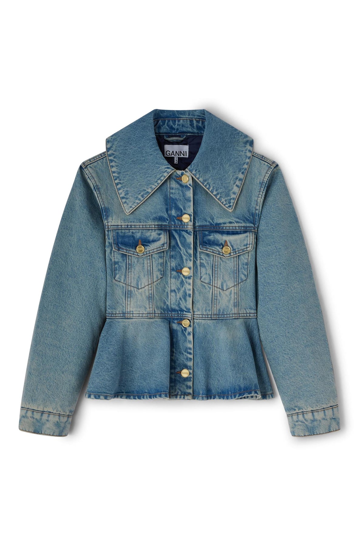 Rigid Denim Padded Peplum Jacket Mid Blue Vintage