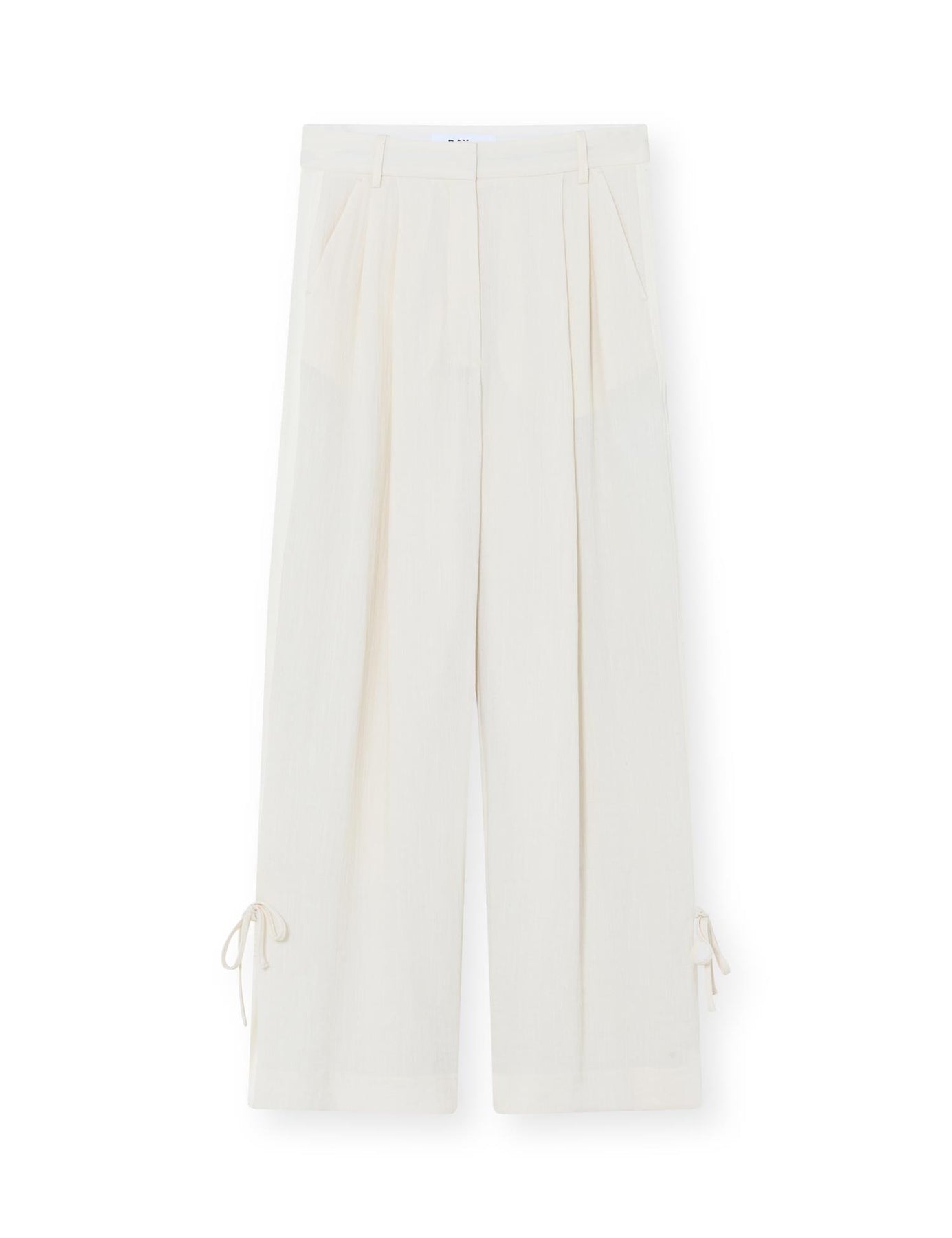 Buksen har en flatterende, rett passform med vide ben som skaper en moderne silhuett. Diskré kontrastdetaljer og rene linjer gir plagget et gjennomført og raffinert uttrykk. Belle passer like godt til sandaler og en lett topp som til blazer og loafers for en mer pyntet look.