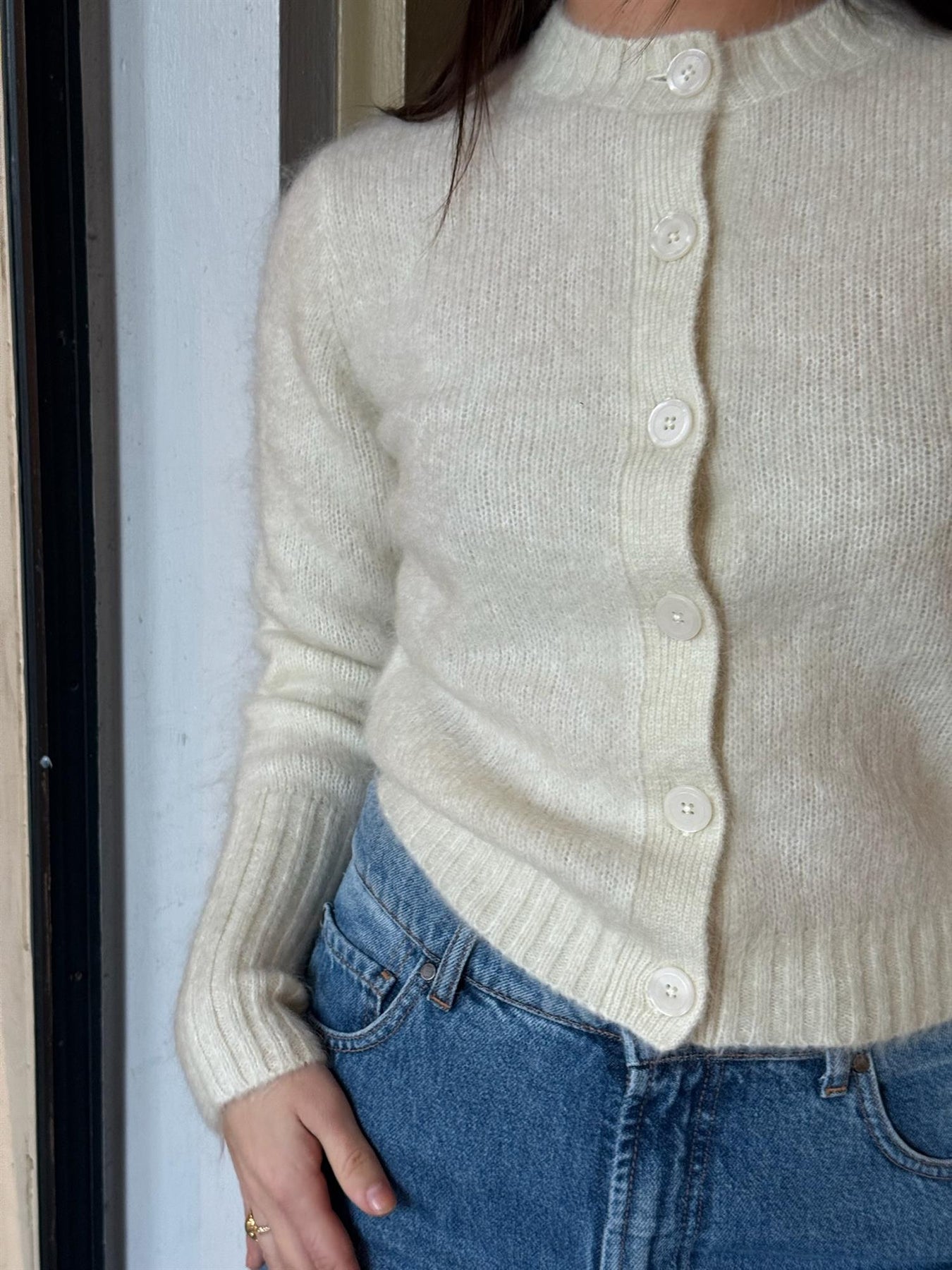 Leonie Rws Rms fra Tiger of Sweden er en elegant og tidløs cardigan i en delikat alabasterfarge, designet for å tilføre et sofistikert preg til garderoben. Det rene uttrykket og den feminine silhuetten gjør plagget like anvendelig til hverdags som til mer pyntede anledninger. Cardiganen er strikket i en eksklusiv blanding av kidmohair og ull, som gir en lett, luftig og behagelig følelse mot huden.