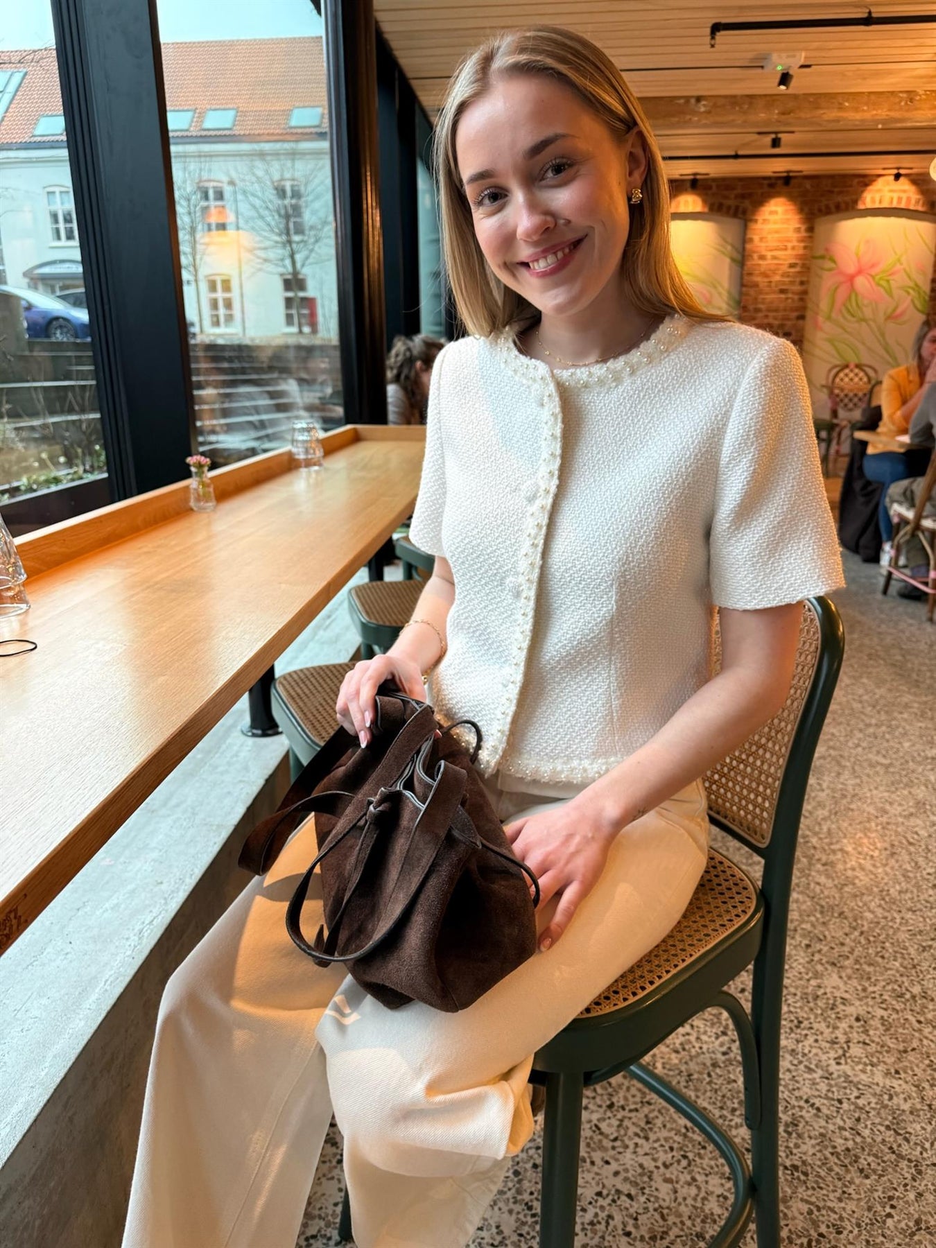 Abeline fra Love Lolina er en elegant tweed-topp med en ren og strukturert silhuett. Den delikate hvite fargen kombinert med det teksturerte stoffet gir et sofistikert uttrykk som passer like godt til hverdags som til mer pyntede anledninger.