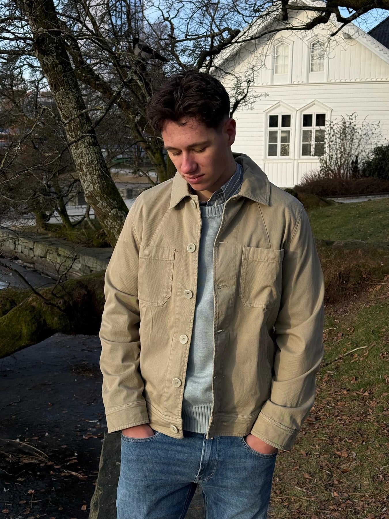 Keeagen Jacket fra Johnny Love er en moderne og u-fôret feltjakke med et avslappet, men sofistikert uttrykk. Jakken er laget i plaggfarget denim twill av høy kvalitet fra anerkjente Tessuti di Sondrio i Italia, kjent for sitt førsteklasses tekstil- og denimhåndverk. Denimen har et autentisk uttrykk kombinert med mykhet og lett stretch, som gir høy komfort og god bevegelighet. Den rene silhuetten og gjennomførte detaljene gjør Keeagan til et allsidig plagg – perfekt som en lett ytterjakke i overgangssesonger eller som et lag-på-lag-plagg innendørs.