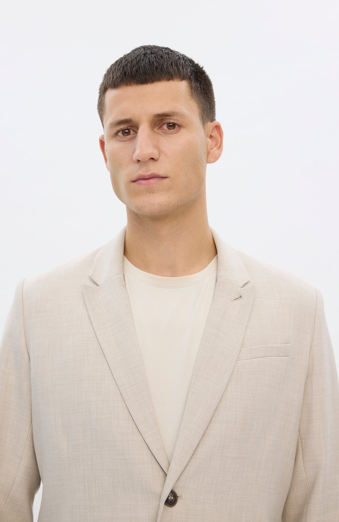 Harry blazer fra Plain Units er en elegant og moderne blazer i den sofistikerte nyansen Silver Sand Melange. Den lyse, melerte tonen gir et raffinert uttrykk som passer perfekt til formelle anledninger, samtidig som den fungerer like godt i en mer avslappet, oppdresset stil. Blazeren kombinerer stil og bærekraft gjennom en gjennomtenkt materialblanding. Den er laget av 47 % resirkulert polyester, 47 % viskose og 6 % elastan. Resirkulert polyester bidrar til redusert avfall og energiforbruk, viskose gir en myk og behagelig følelse mot huden, mens elastan sørger for fleksibilitet og en komfortabel passform med god bevegelighet. Designet har en klassisk silhuett med knappelukking i front og rene linjer som understreker det tidløse uttrykket.