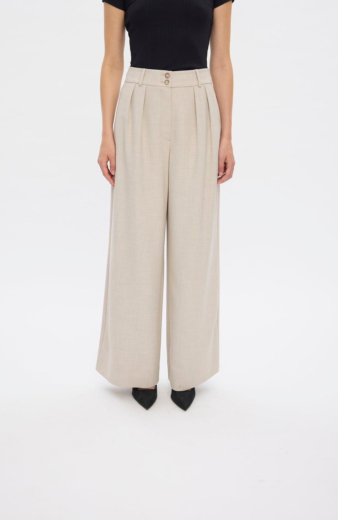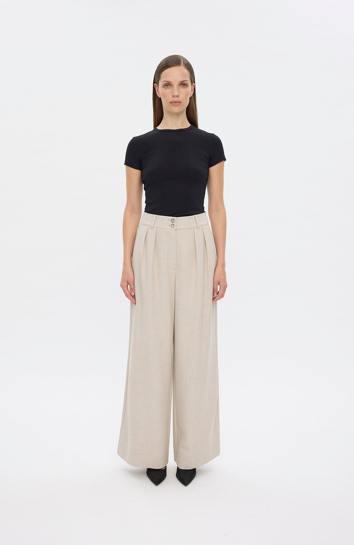 Karen fra Five Units er en elegant og moderne dressbukse i den sofistikerte nyansen Silver Sand Melange. Med sitt rene uttrykk og flatterende silhuett er dette et stilfullt valg til både formelle anledninger og oppgraderte hverdagsantrekk. Buksen har en feminin passform med lange, vide ben som faller pent og gir et eksklusivt uttrykk. Den myke kvaliteten med stretch sikrer høy komfort og god bevegelighet gjennom hele dagen. Den gjennomtenkte materialblandingen kombinerer struktur og fleksibilitet, samtidig som bruken av resirkulert polyester gjør den til et mer bærekraftig valg.