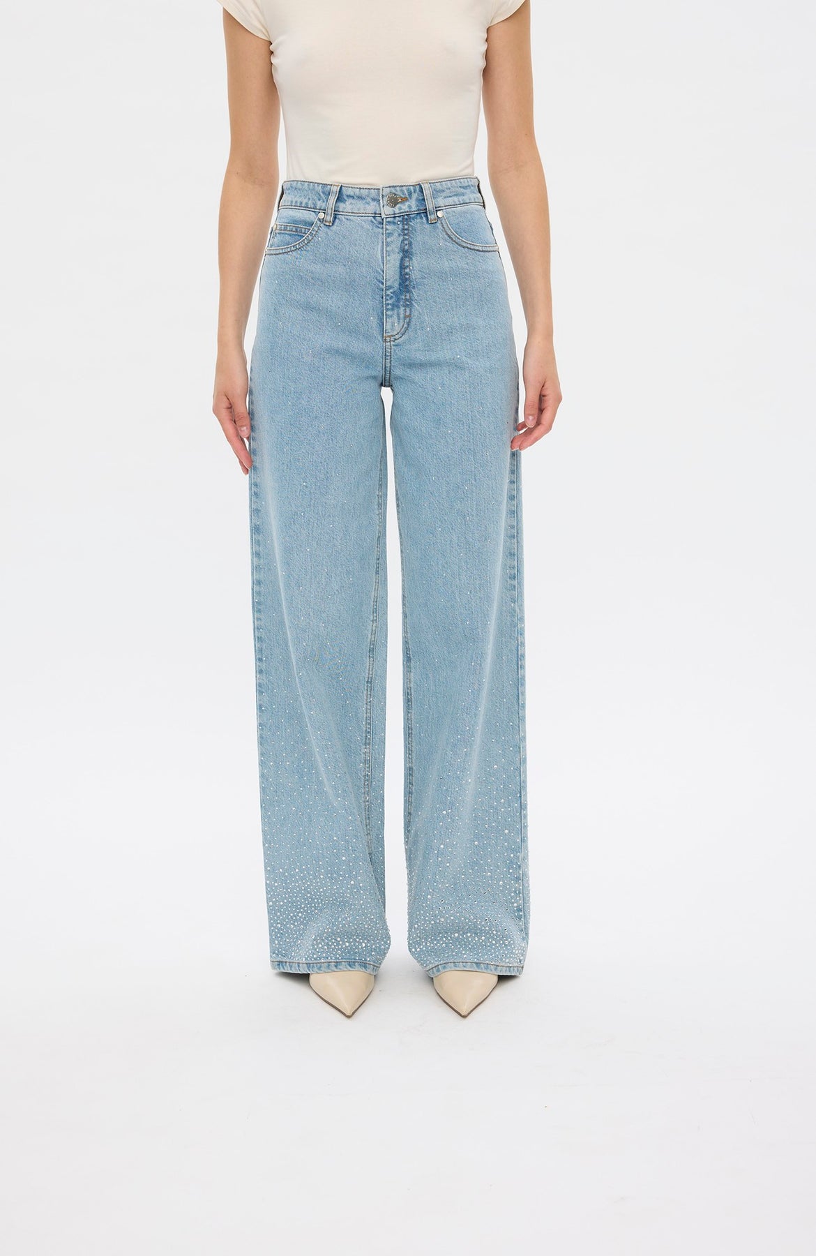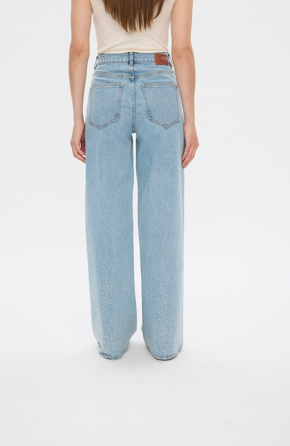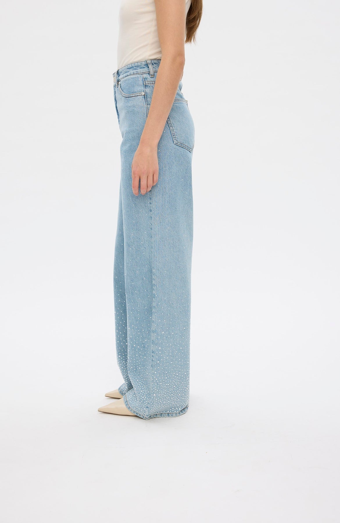 Abby fra Five Units er en moderne denimfavoritt med et eksklusivt og feminint uttrykk. Den lyse vasken kombinert med subtile rhinestone-detaljer gir buksen et sofistikert preg som løfter antrekket – enten du styler den til hverdags eller kveld. Buksen har en flatterende passform med rette, lange ben som gir en elegant silhuett. Den myke denimkvaliteten med stretch sikrer komfort hele dagen, samtidig som den holder fasongen. Den bærekraftige blandingen med resirkulert bomull gjør den til et mer bevisst valg.