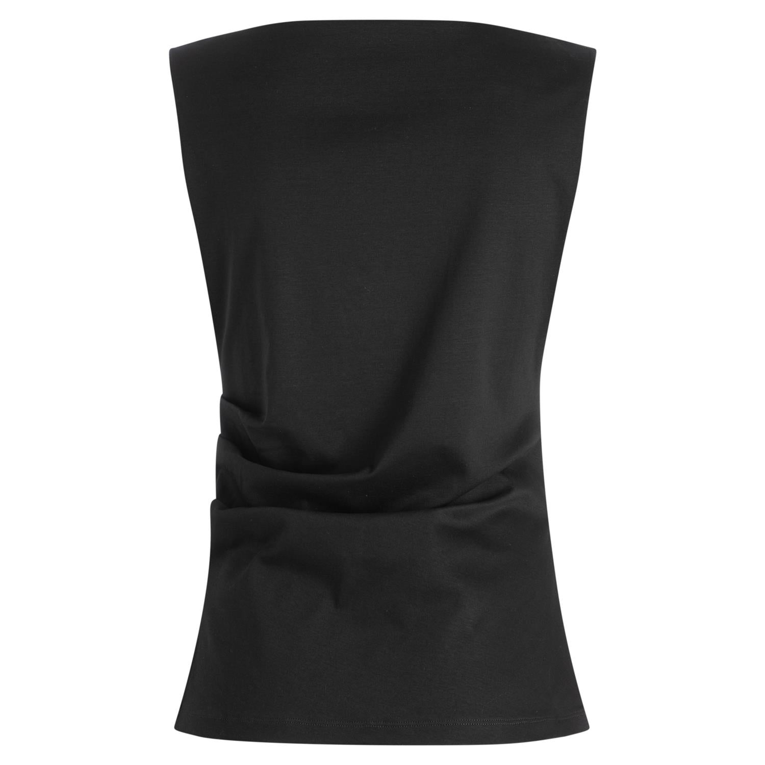 Emiaka topp fra BOSS Womenswear er en elegant og moderne basisfavoritt med en sofistikert vri. Sidesømmer med legg skaper en asymmetrisk kant som gir plagget en spennende silhuett og et stilrent uttrykk. Den myke, merceriserte bomullsjerseyen gir en glatt og eksklusiv finish med behagelig komfort mot huden. Den vide halsutringningen tilfører et flatterende og feminint preg, mens den smale passformen fremhever silhuetten på en elegant måte. Den asymmetriske kanten gjør toppen like aktuell til dressbukser og skjørt som til jeans for en mer avslappet stil.