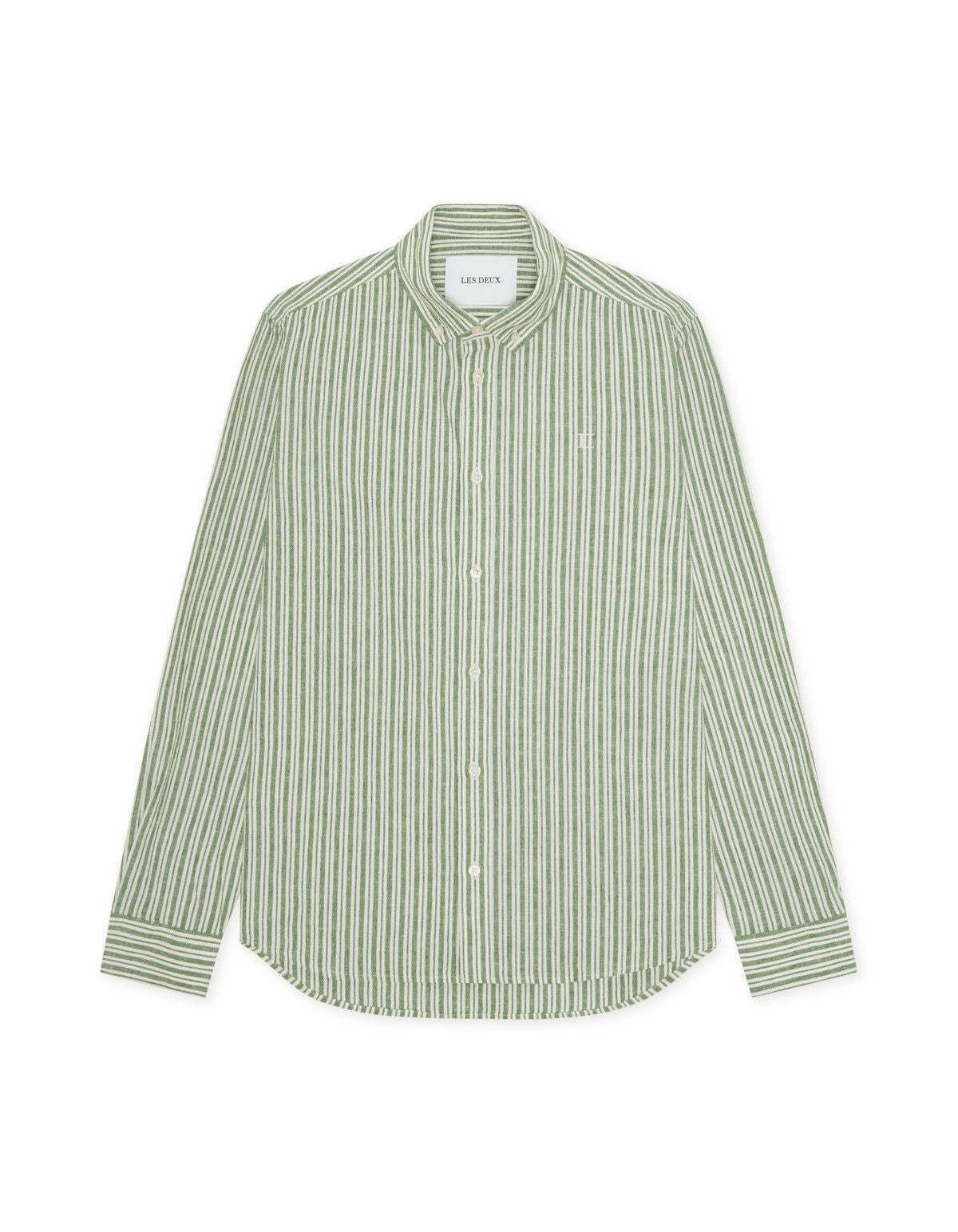 Stripe Cotton-Linen Shirt Artichoke Green