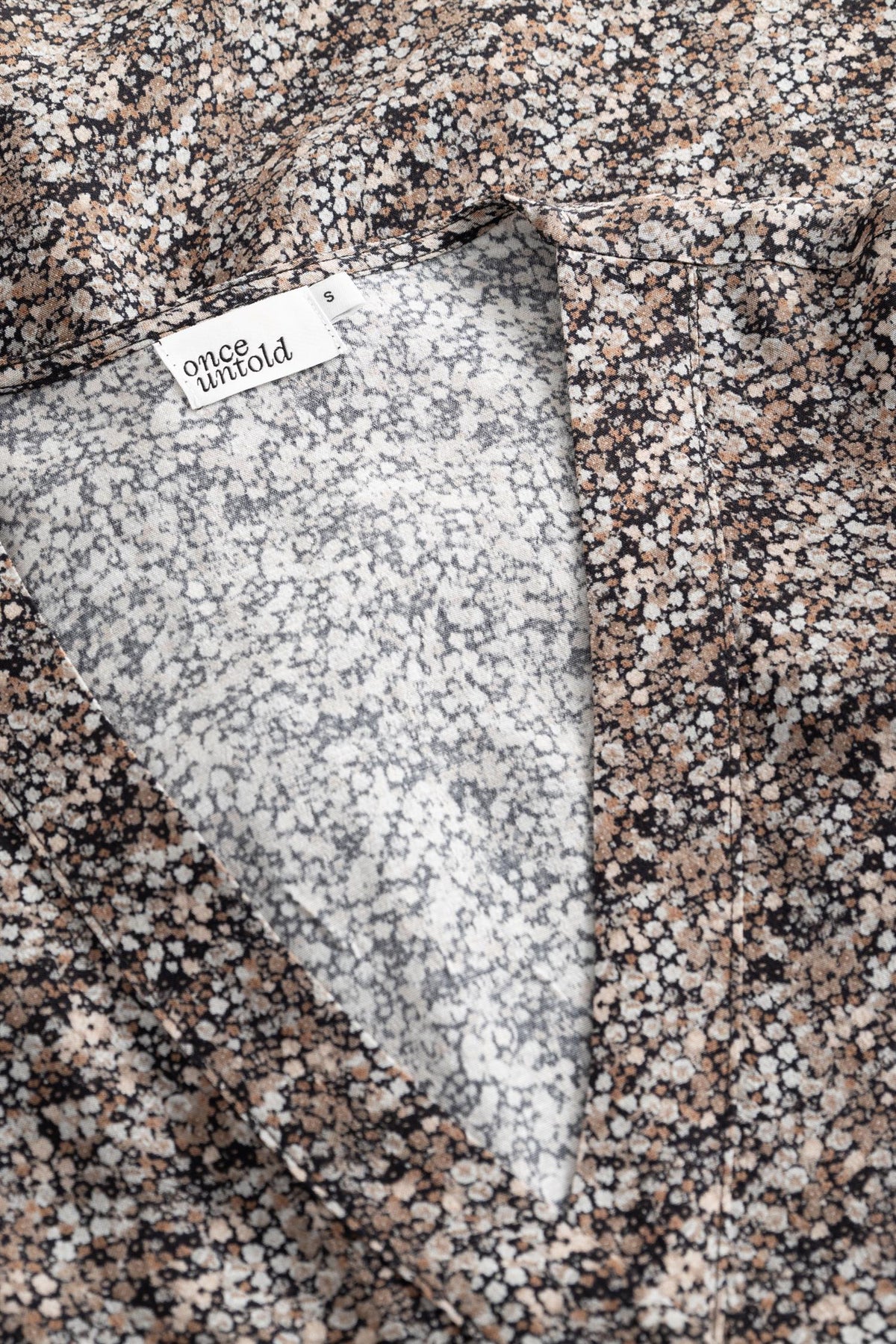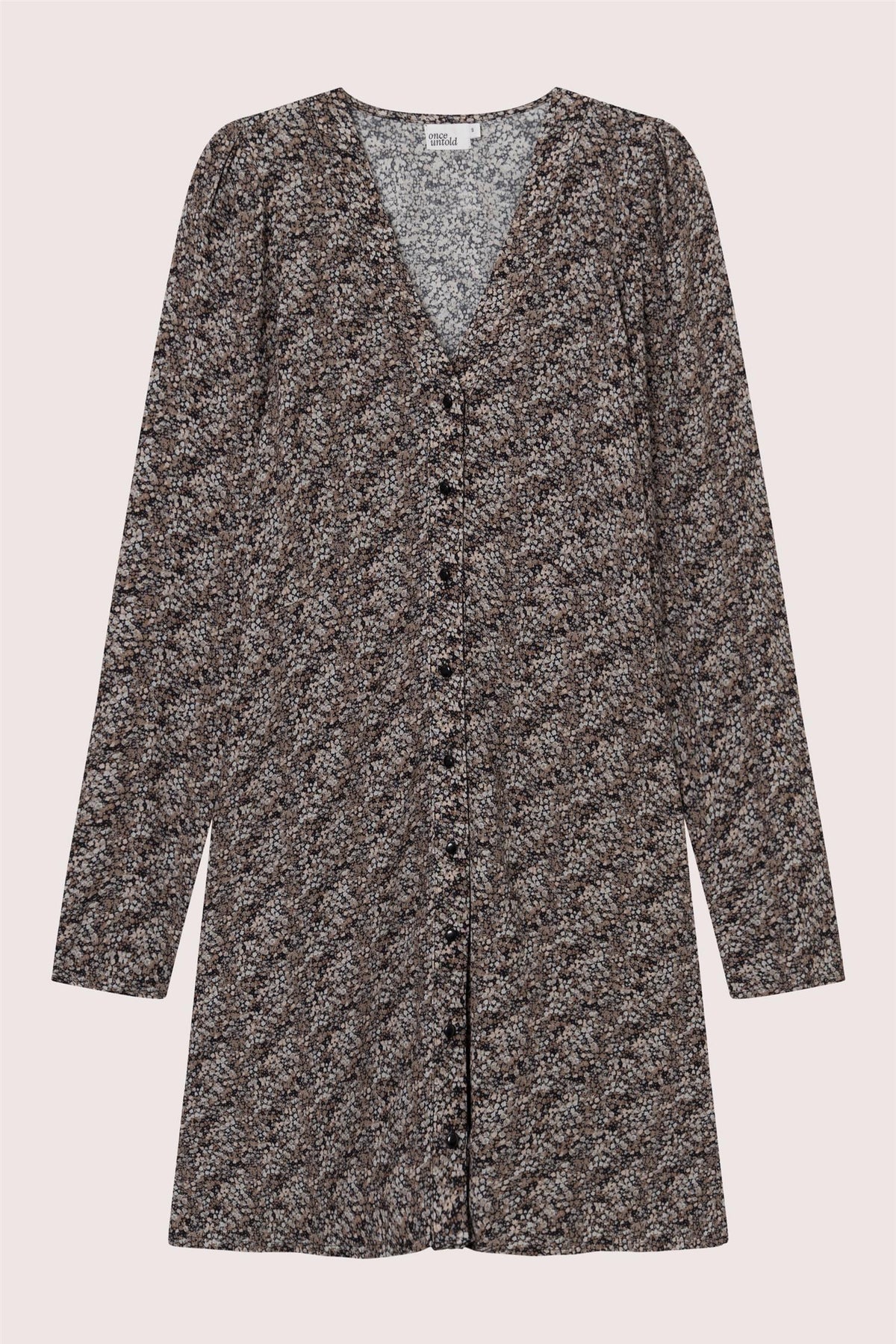 Ellen LS Short Dress fra Once Untold. En minikjole med knepping med et vakkert blomstermønster med små blomster. Kjolen har lange rette ermer, en flatterende V-hals og en lett utsvingt passform ved midjen, noe som gir kjolen en feminin fasong.